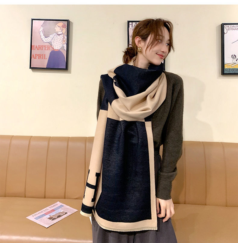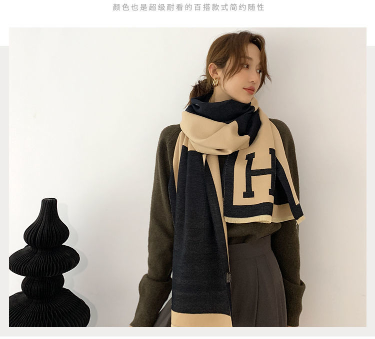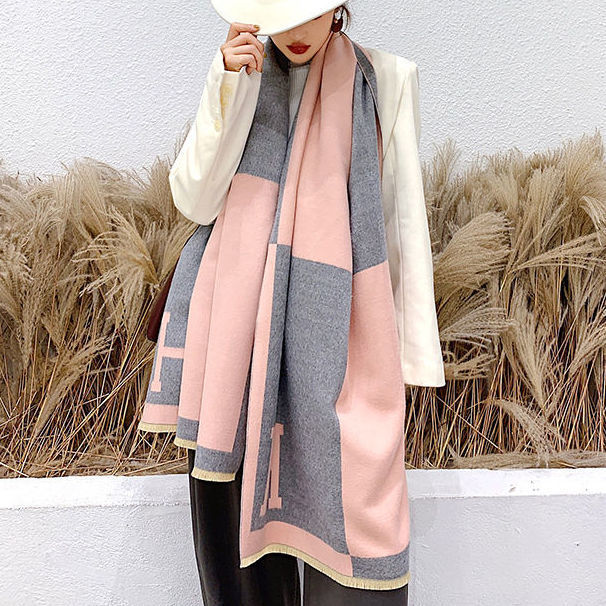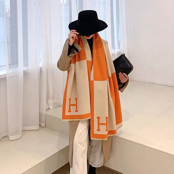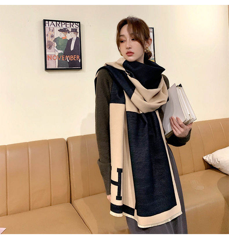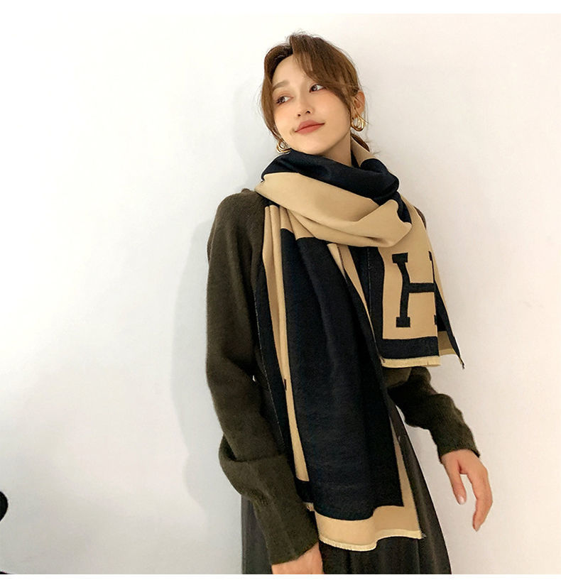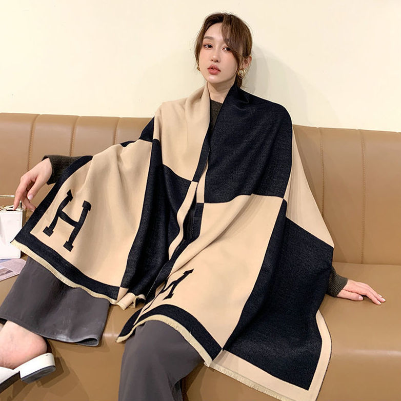 한국 H 레터 컬러 매칭 격자 무늬 캐시미어 스카프 가을과 겨울 두꺼운 따뜻한 외부 숄 이중 사용 긴 스카프스토어 가기