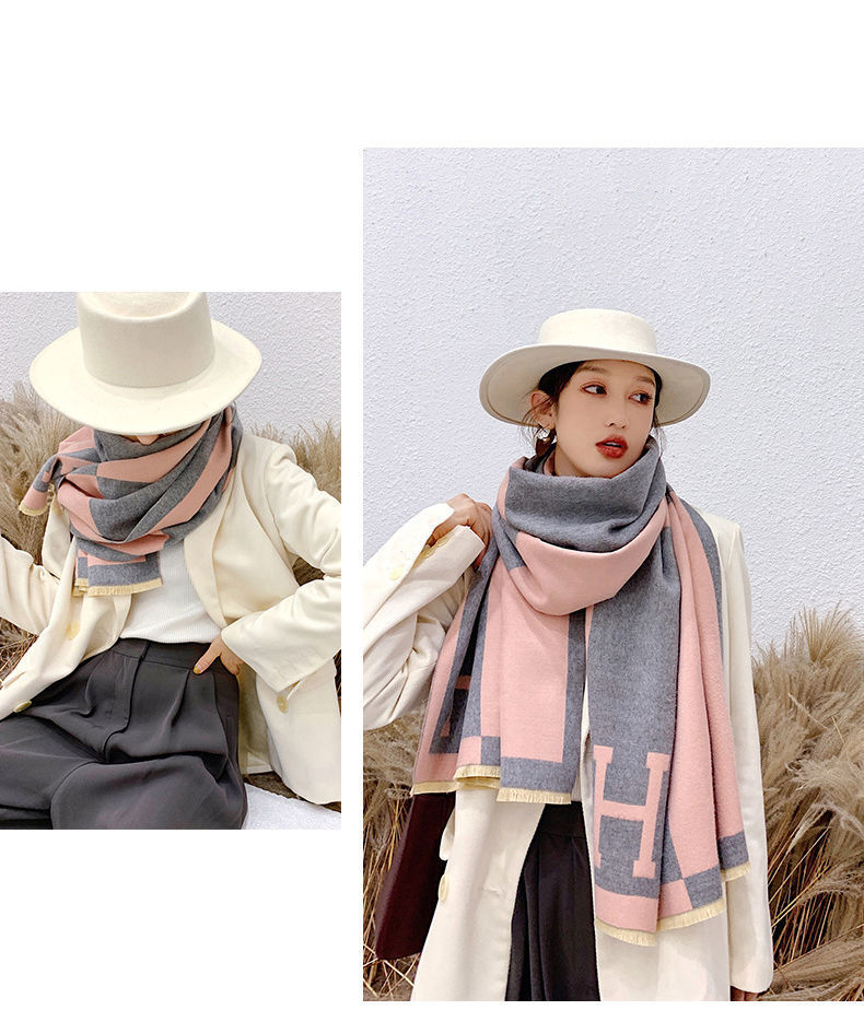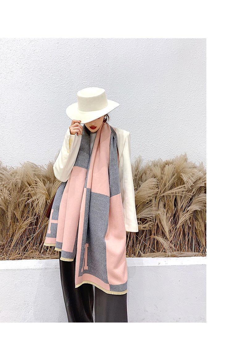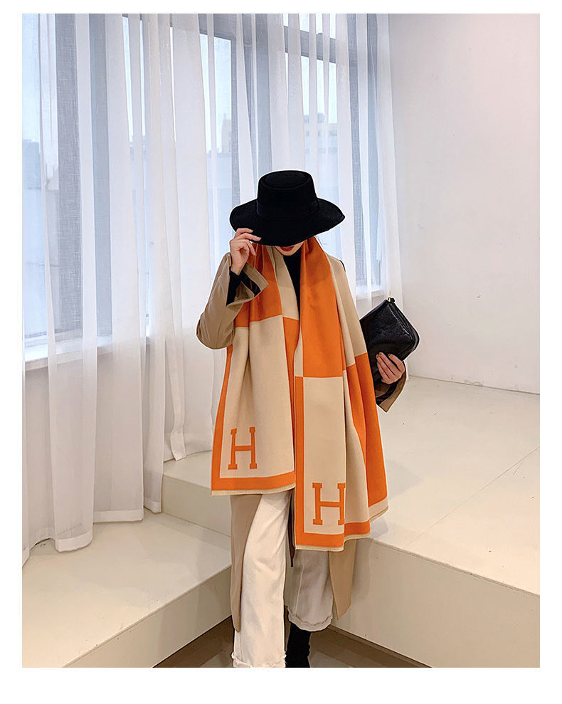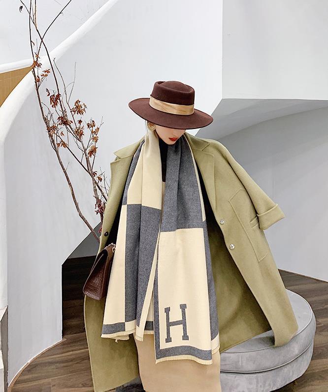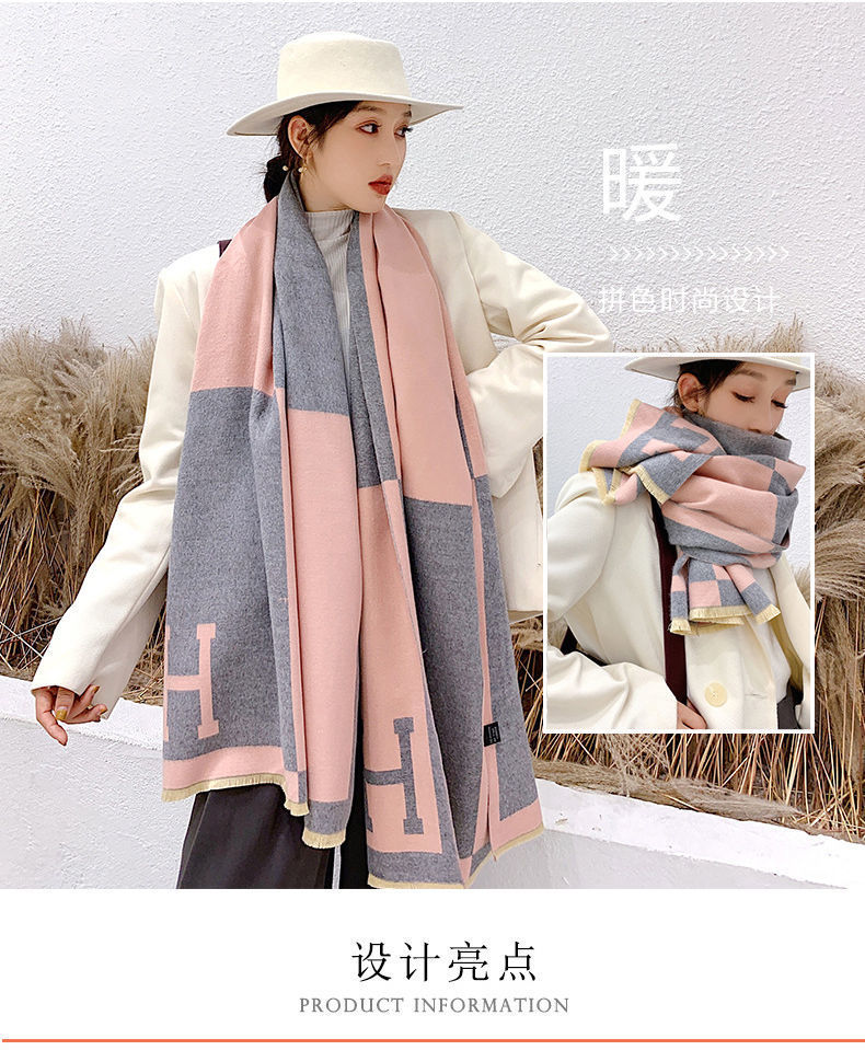 한국 H 레터 컬러 매칭 격자 무늬 캐시미어 스카프 가을과 겨울 두꺼운 따뜻한 외부 숄 이중 사용 긴 스카프스토어 가기