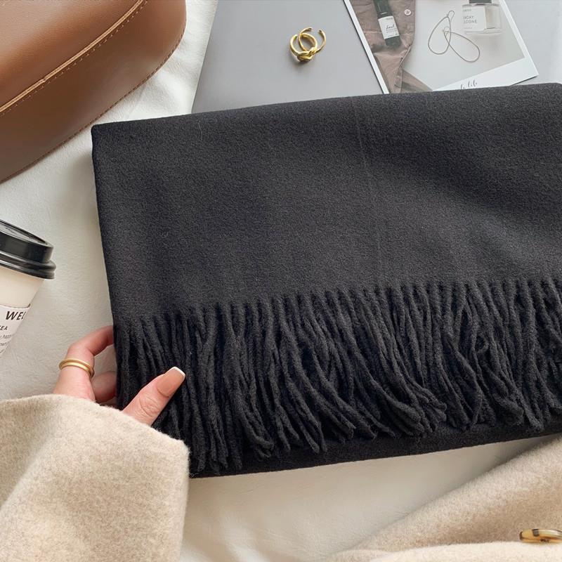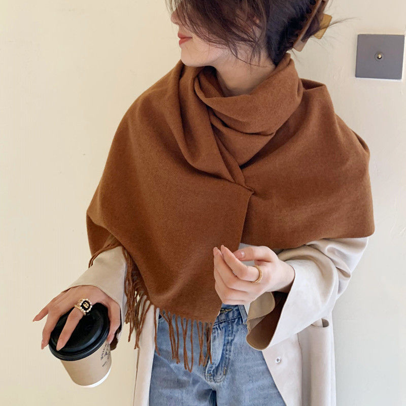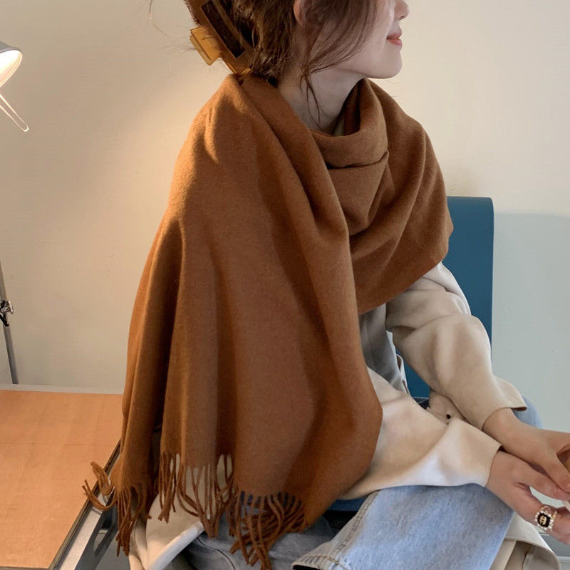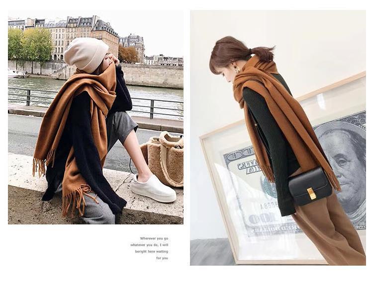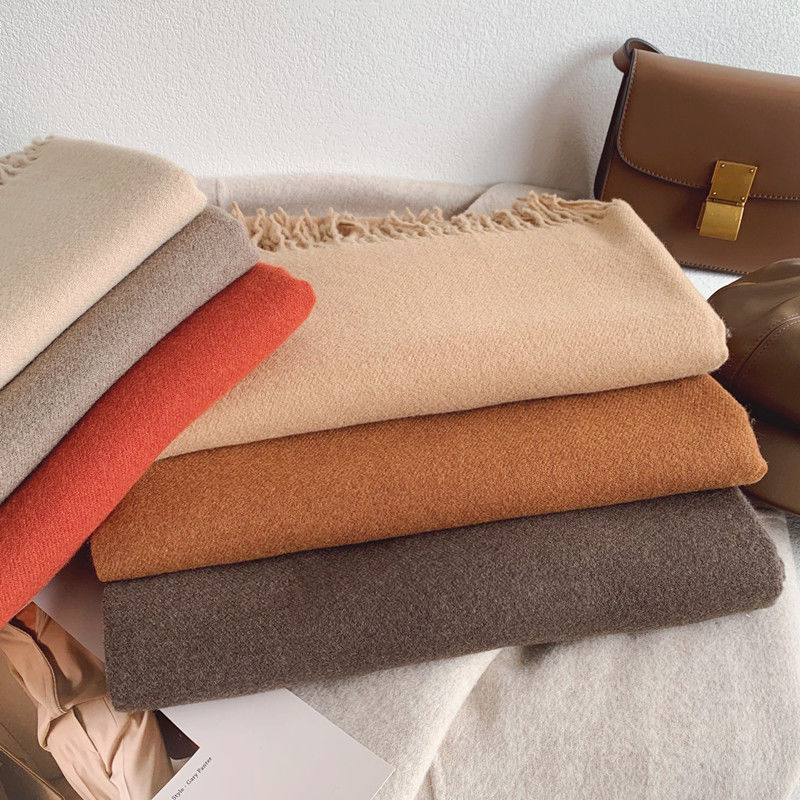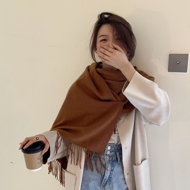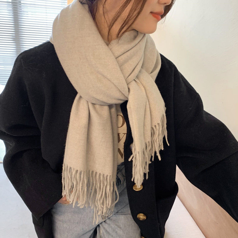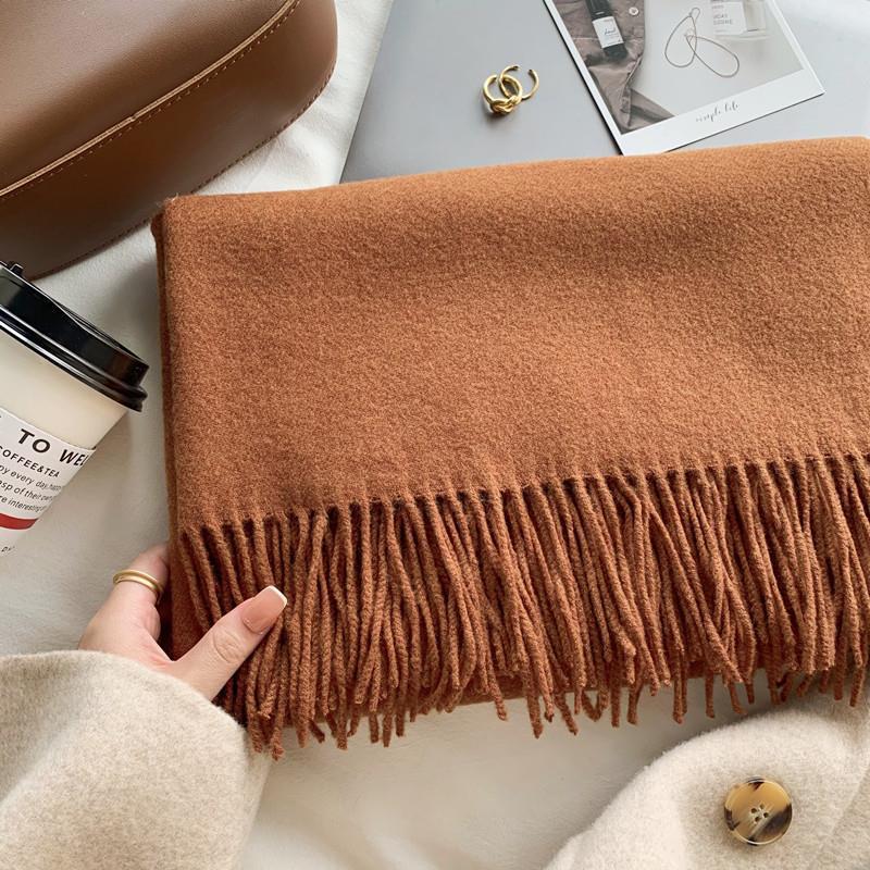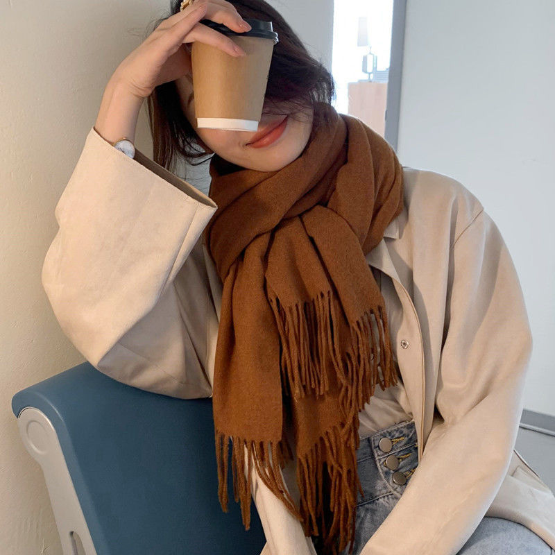단색 술 양가죽 스카프 선택 남성용 및 여성용 겨울 한국식 두꺼운 모든 경기 학생 대형 숄 울 스카프스토어 가기