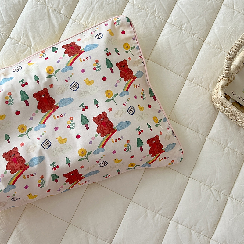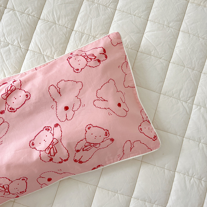 Ins 한국 곰 물방울 무늬 귀여운 만화 면 어린이 베갯잇 유치원 아기 면 싱글 베갯잇