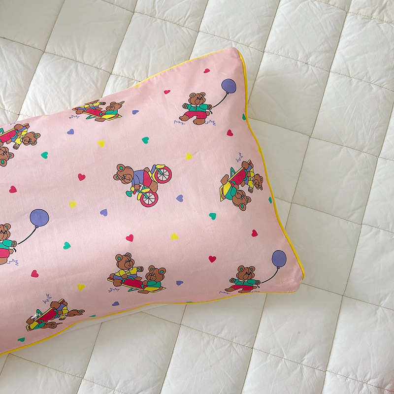 Ins 한국 곰 물방울 무늬 귀여운 만화 면 어린이 베갯잇 유치원 아기 면 싱글 베갯잇스토어 가기