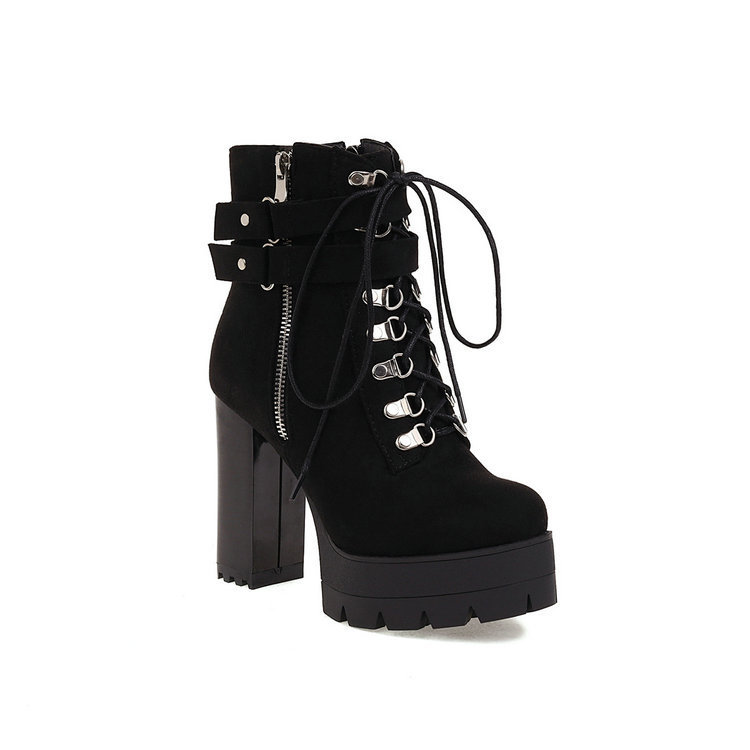 대외 무역 여성 부츠 가을과 겨울 새로운 두꺼운 뒤꿈치 플랫폼 신발 무대 패션쇼 방수 테이블 기모 리벳 여성 부츠 짧은 부츠