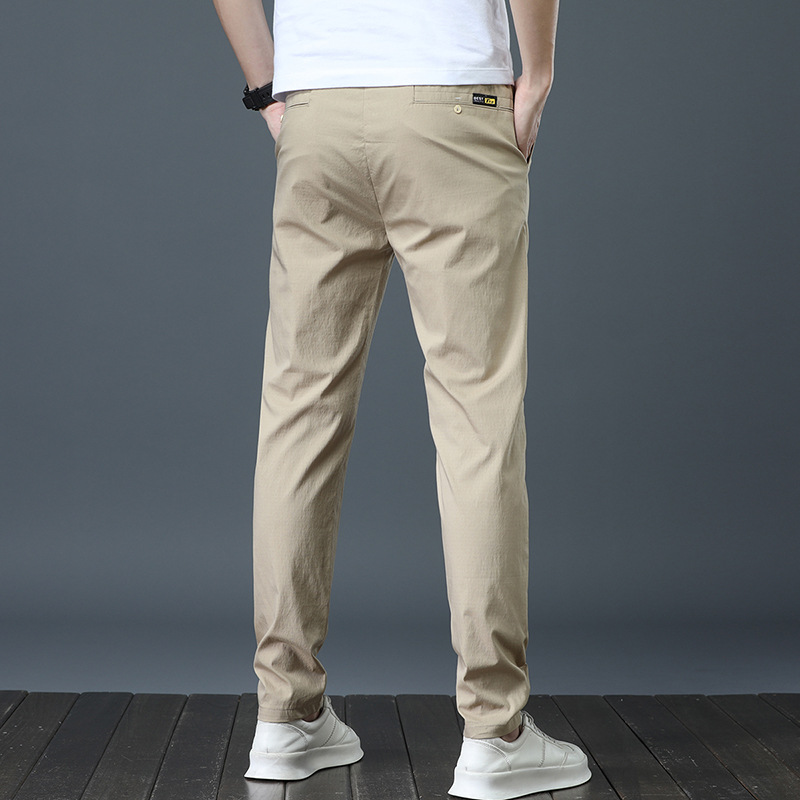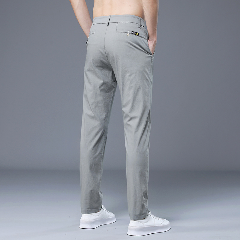 2023 New 아이스 실크 캐주얼 바지 남성 슬림 한국 패션 스트레치 남성 바지 여름 얇은 머리카락