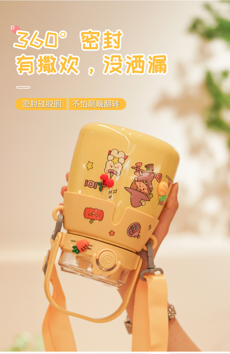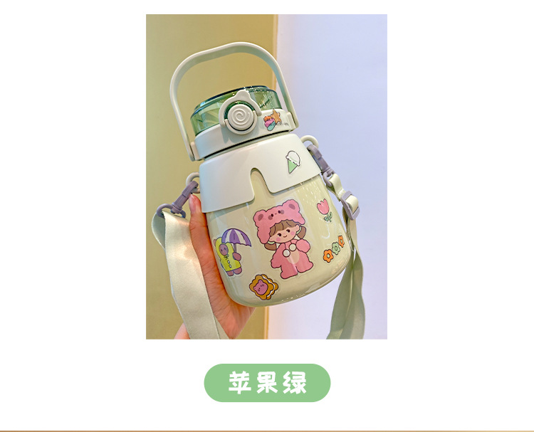 316L 대용량 보온병 컵 학생 귀여운 창조적 인 큰 배꼽 컵 인터넷 연예인 물 컵 더블 음료 어린이 컵 재고