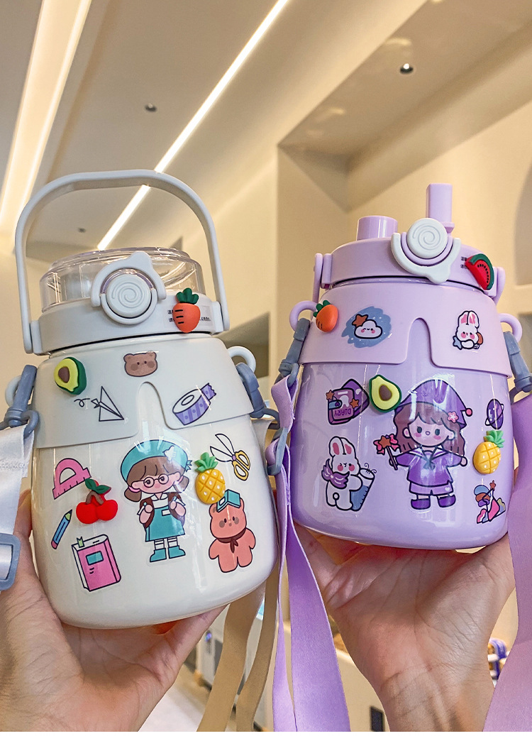 316L 대용량 보온병 컵 학생 귀여운 창조적 인 큰 배꼽 컵 인터넷 연예인 물 컵 더블 음료 어린이 컵 재고스토어 가기