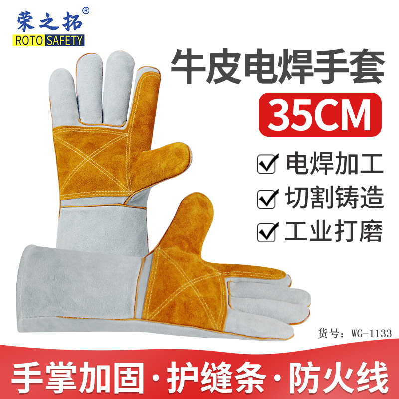 Rongzhituo 소가죽 용접 장갑 용접 두꺼운 고온 절연 방지 화상 원예 찌르기 방지 야외 긴 장갑스토어 가기