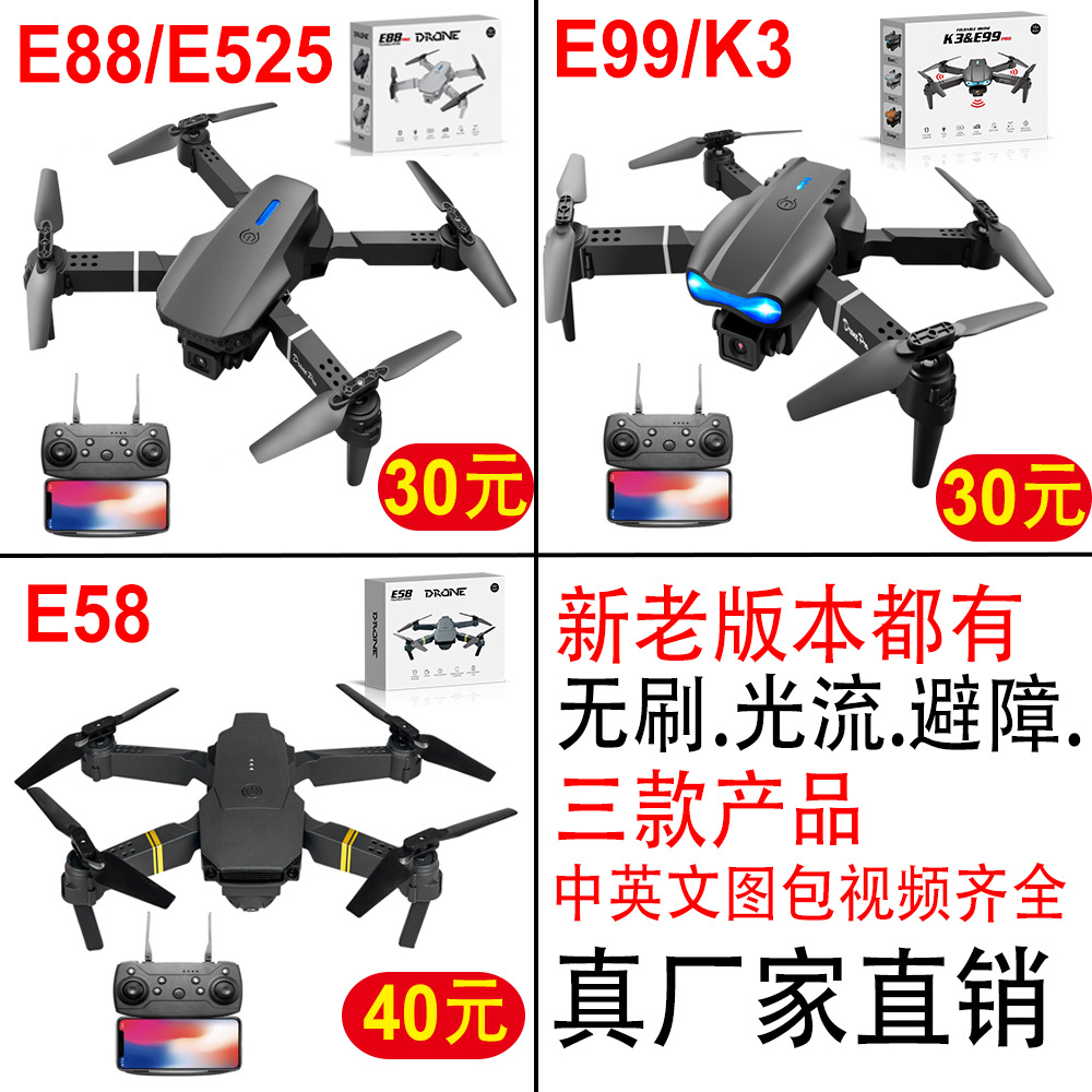 국경 간 E88 브러시리스 드론 광학 흐름 원격 제어 항공기 장애물 회피 쿼드 콥터 접이식 HD 4K 공중 카메라