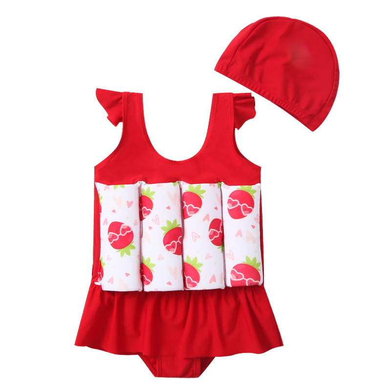 새로운 어린이 수영복 여성용 귀여운 인쇄 배꼽 커버 보수적 인 패션 스커트 원피스 아기 소녀의 부력 수영복