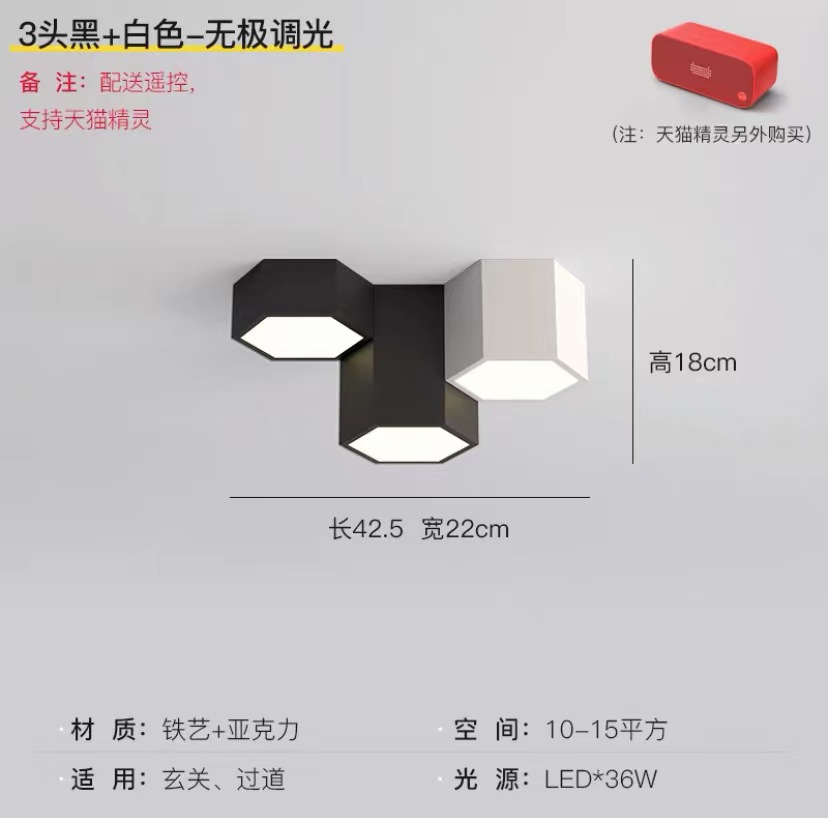 • 육각 3 헤드 (블랙 + 화이트)-무단 리모콘 + Tmall Genie