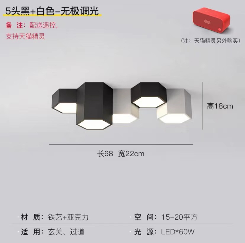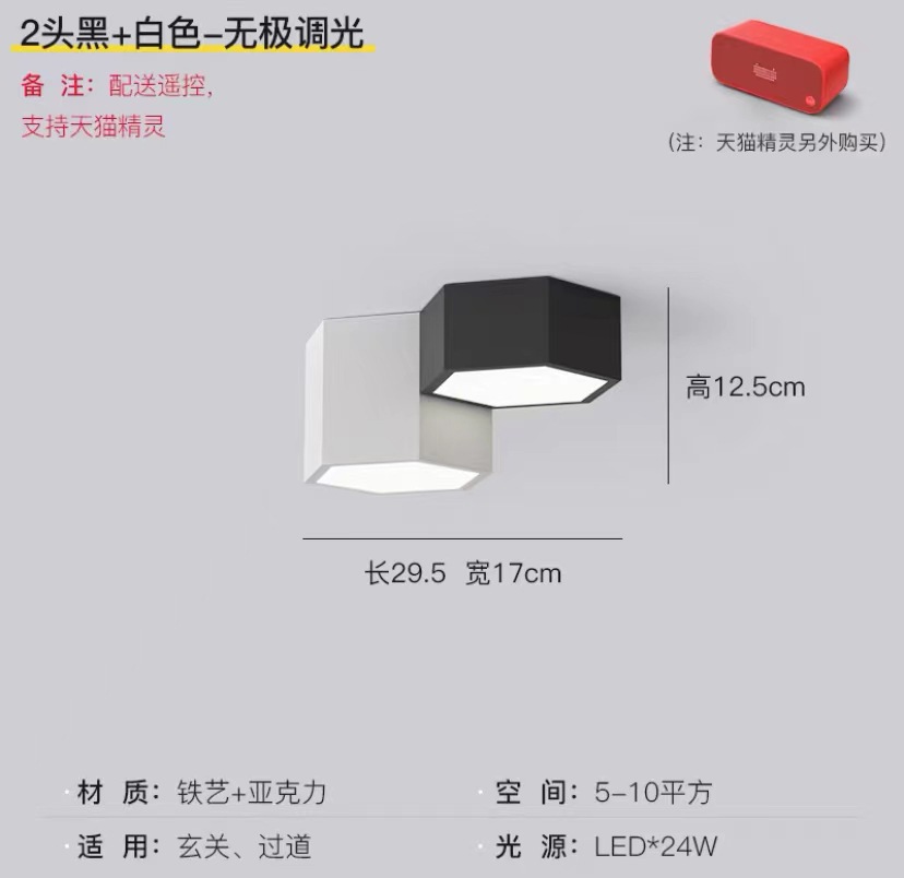 • 육각 2 헤드 (블랙 + 화이트)-무단 리모콘 + Tmall Genie