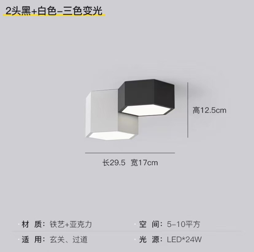 • 육각 2 헤드 (검정 + 흰색)-3 색 디밍