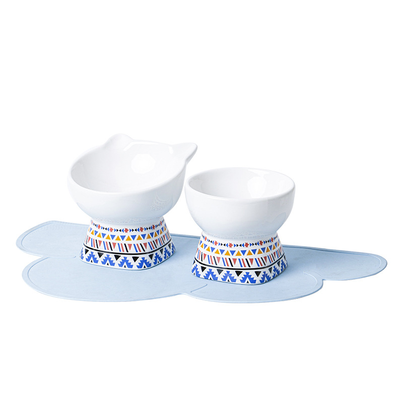 고양이 그릇 세라믹 보호 경추 안티 노크 높은 발 비스듬한 애완 동물 개 고양이 물 밥 그릇 고양이 음식 분지 배치