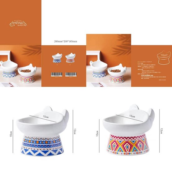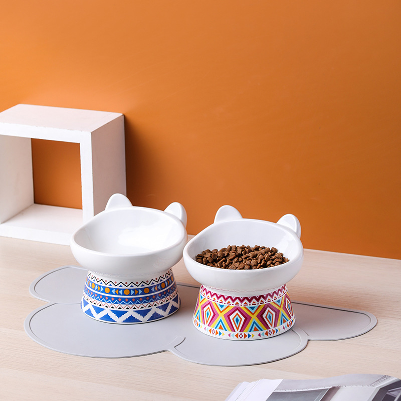 고양이 그릇 세라믹 보호 경추 안티 노크 높은 발 비스듬한 애완 동물 개 고양이 물 밥 그릇 고양이 음식 분지 배치스토어 가기