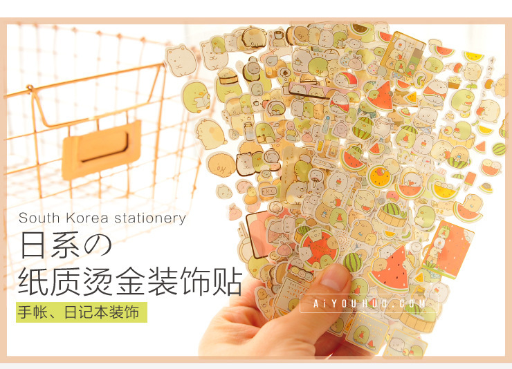 플랫 스티커 한국어 문구 일본어 코너 생물학적 손 계정 장식 브론징 만화 동물 수박 스티커스토어 가기