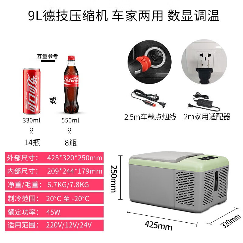 • 9L 컴프레서 급속 동결 로고 없음 녹색 [자동차 홈 듀얼 사용]]