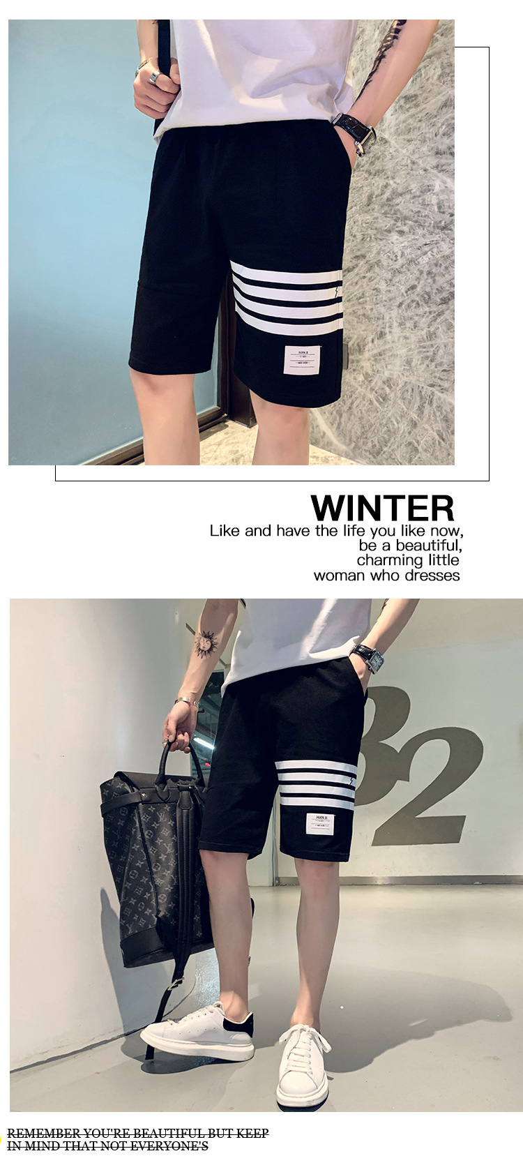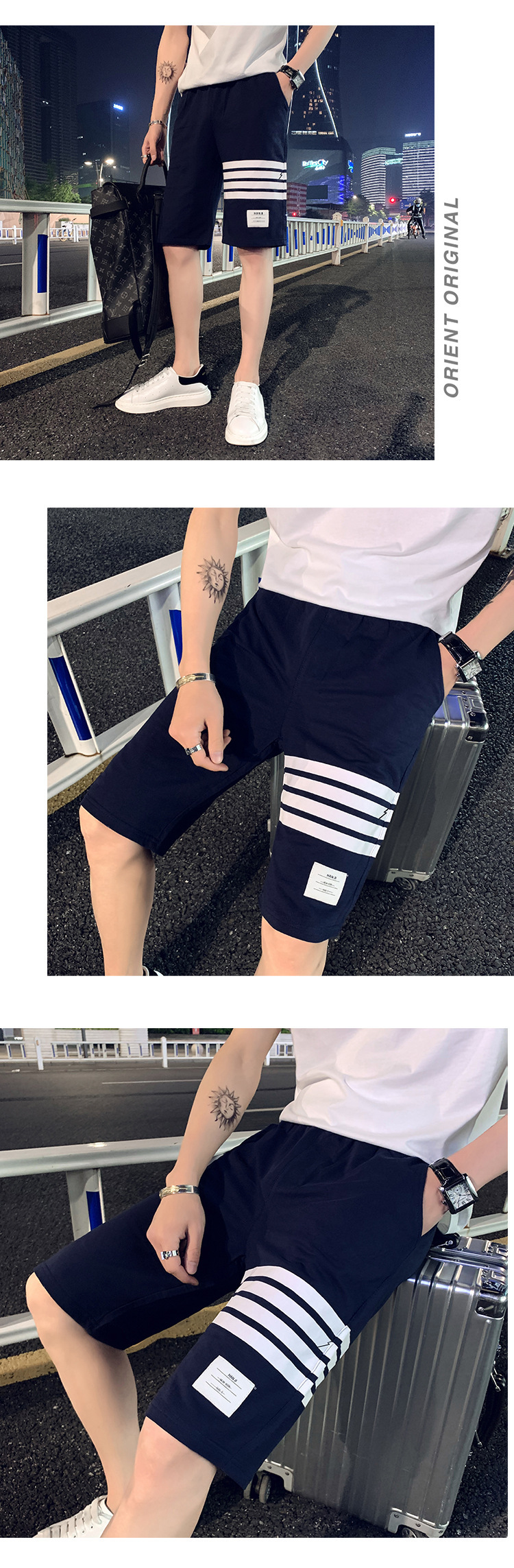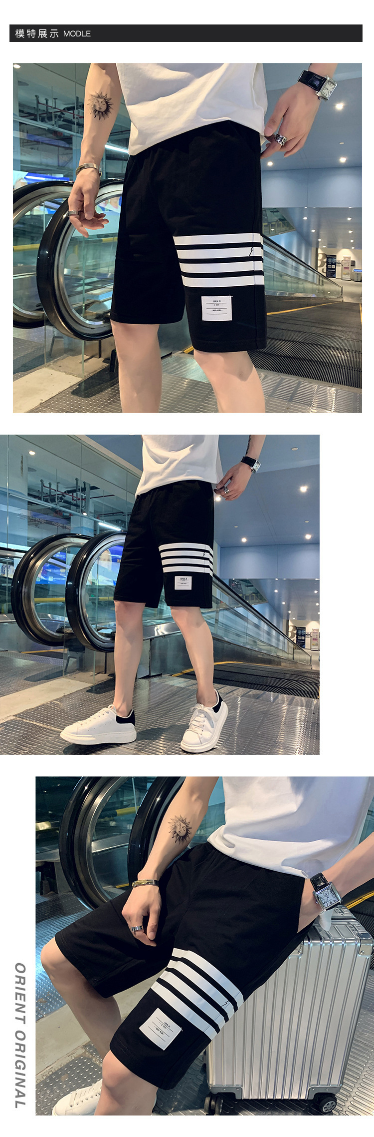 条纹五分短裤男夏季宽松直筒休闲百搭运动沙滩裤衩潮牌卫裤中裤子
