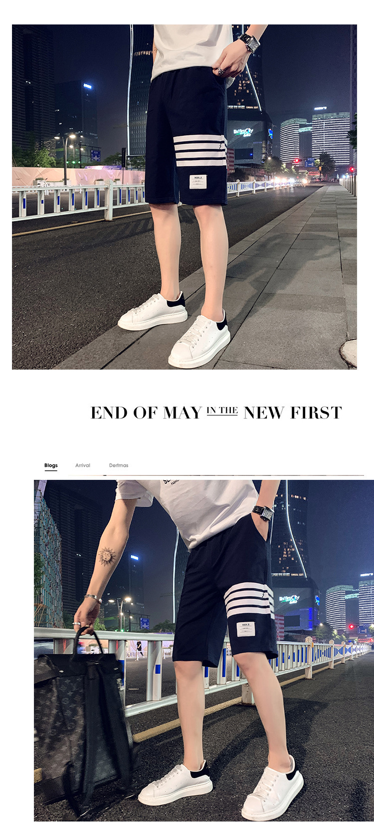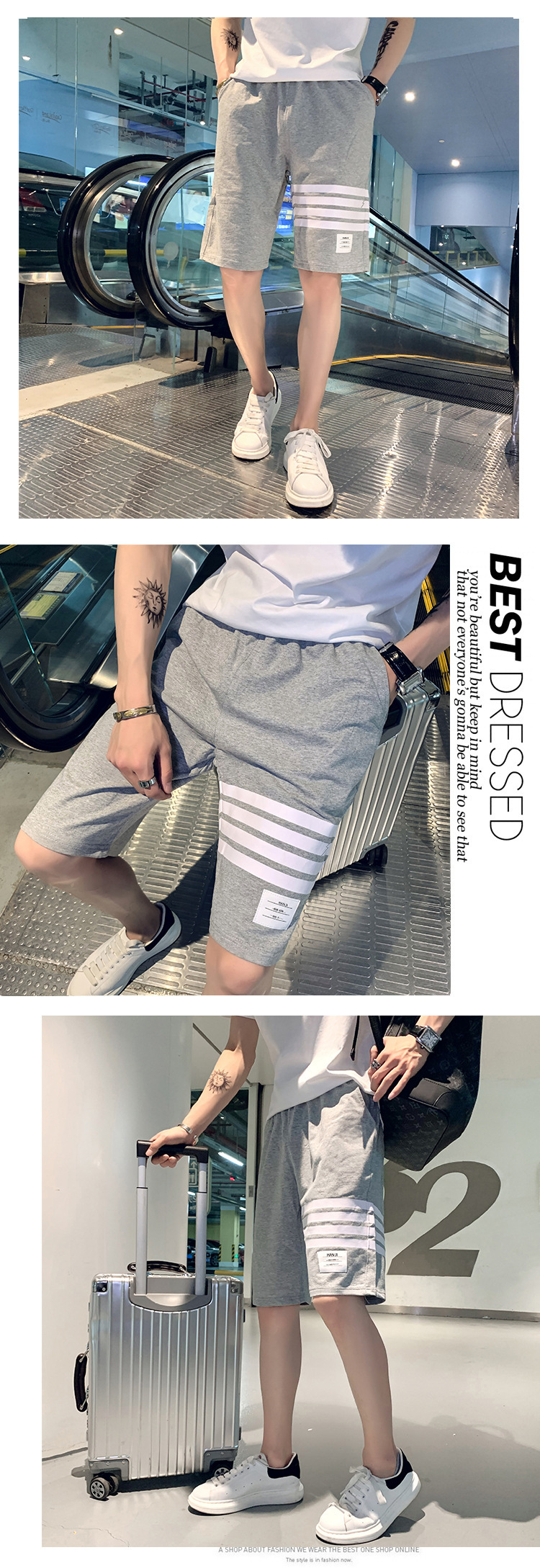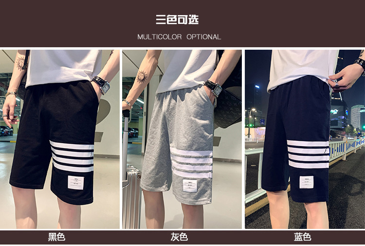 条纹五分短裤男夏季宽松直筒休闲百搭运动沙滩裤衩潮牌卫裤中裤子