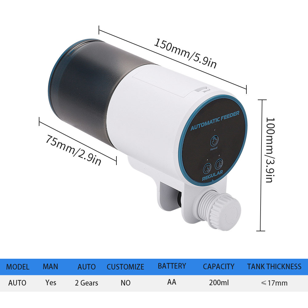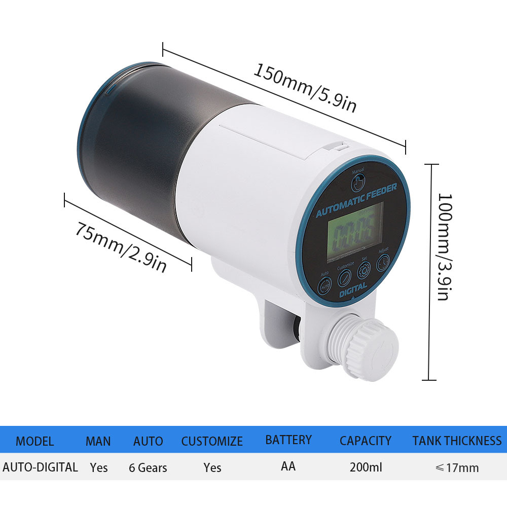 产品特色:自由设定,智能喂食,200ML投食盒,大屏数显,多段定时,持久续航,手动自动双模式;