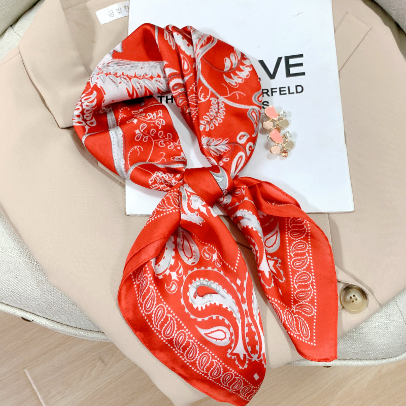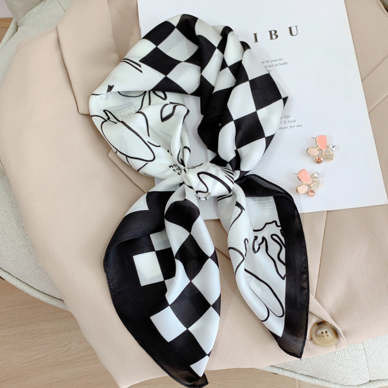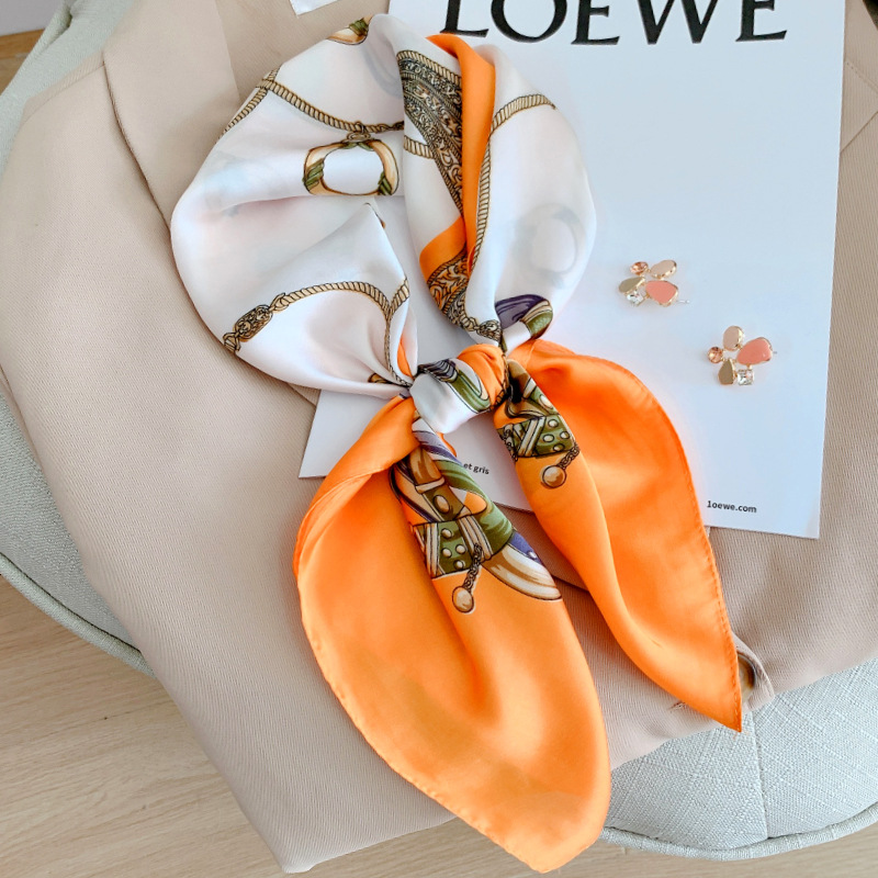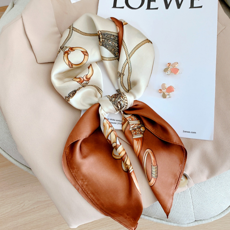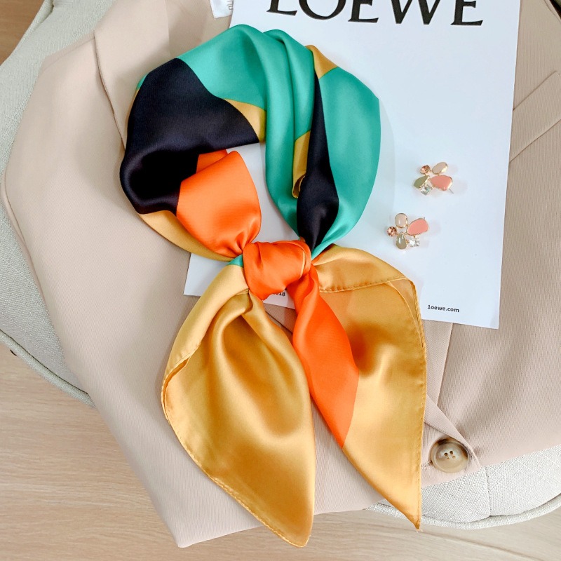 봄과 여름 새로운 한국식 실크 스퀘어 스카프 여성용 패션 장식 자외선 차단제 스카프 일본과 한국식 달콤한 예술적 작은 스카프