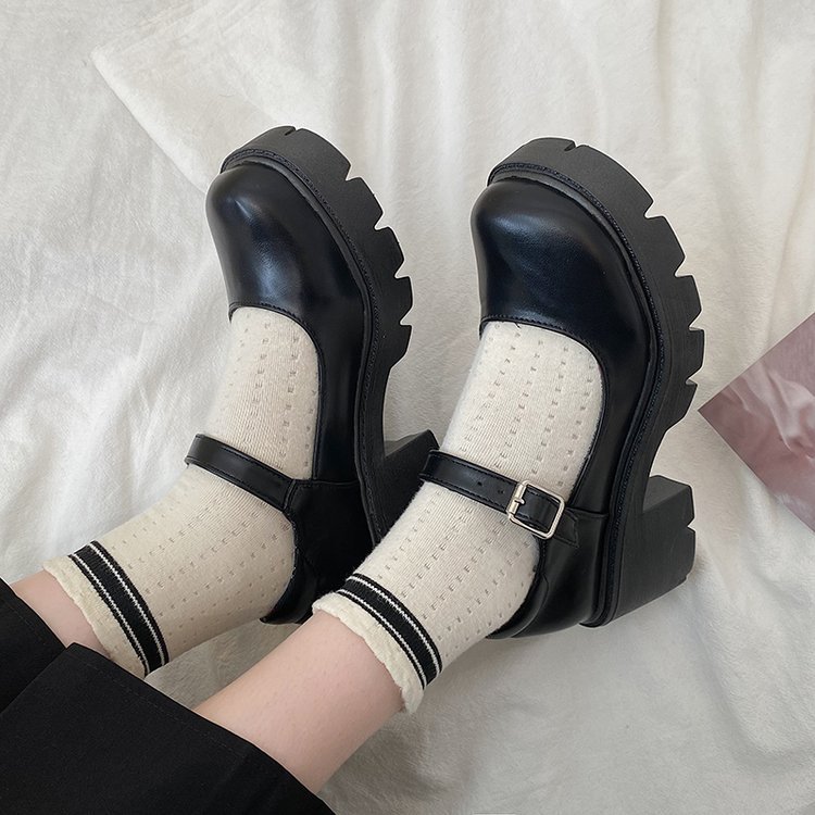 일본식 Mary Jane 여성용 두꺼운 밑창 대학 스타일 싱글 레이어 신발 2021 봄과 여름 새로운 스타일 복고풍 영국식 가죽 신발