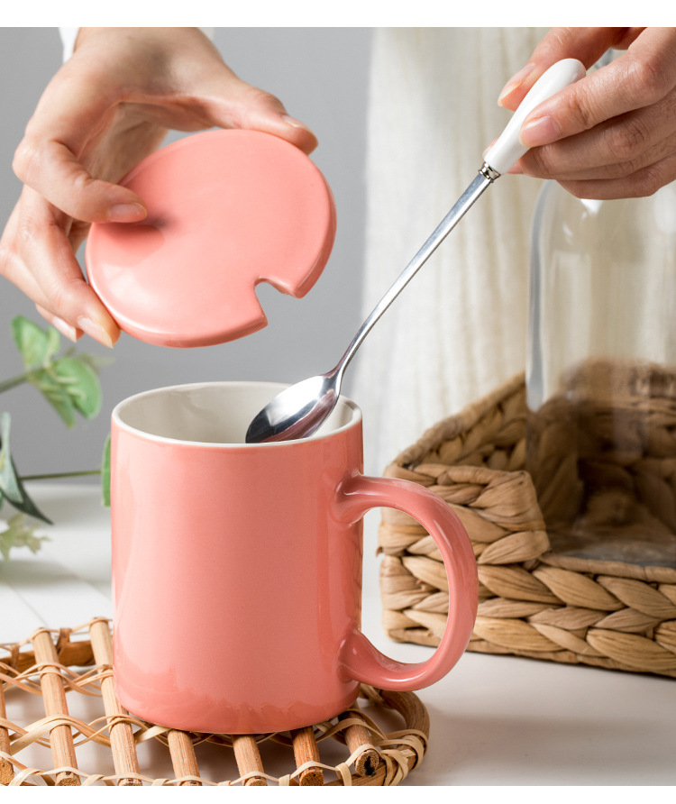 뚜껑과 숟가락을 인쇄하는 소년을위한 머그잔 맞춤형 세라믹 컵 여성용 가정용 커피 컵 티 컵 새로운 스타일