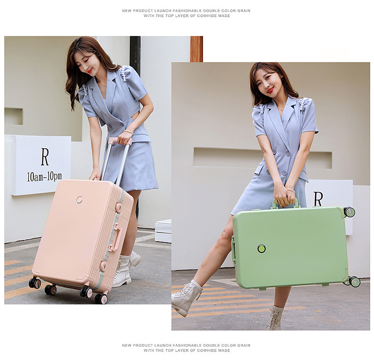 작고 신선한 캔디 컬러 알루미늄 프레임 가방 트롤리 케이스 20-22-24-26 패션 여행 가방 도매스토어 가기