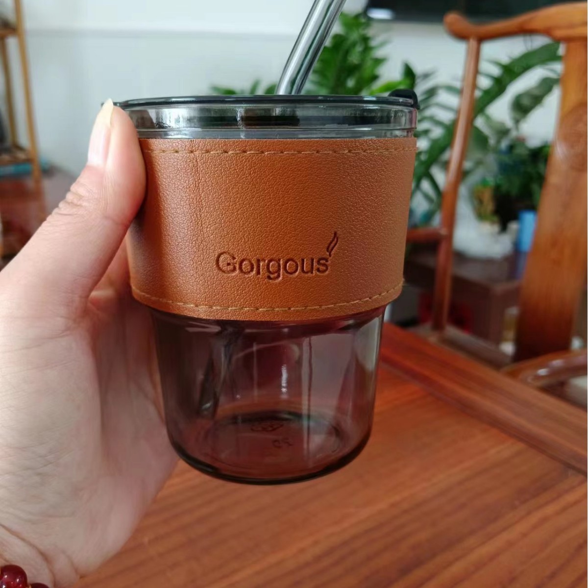 도매 유리 물 컵 슬러브 컵 그물 레드 인 바람 with 빨대 물 컵 사무실 하이 컬러 값 선물 물 컵스토어 가기