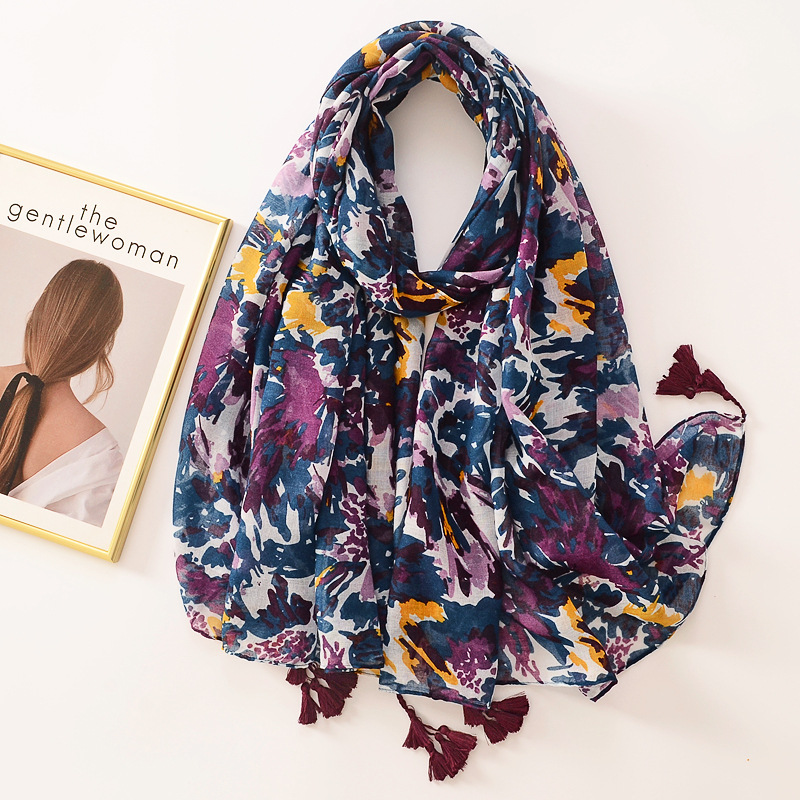 한국 스타일의 세련된 화려한 손 그림 긴 술 큰 스카프면과 린넨 느낌 스카프 예술적 올 매치 선 스크린 목도리