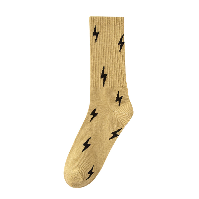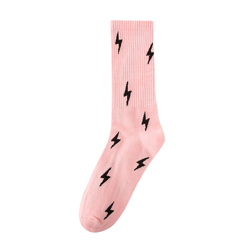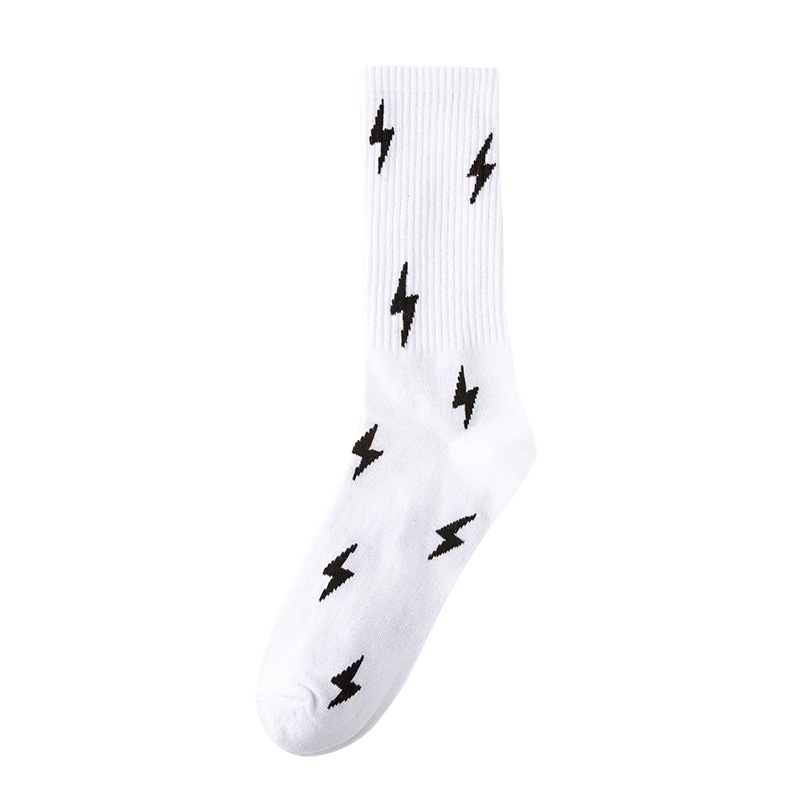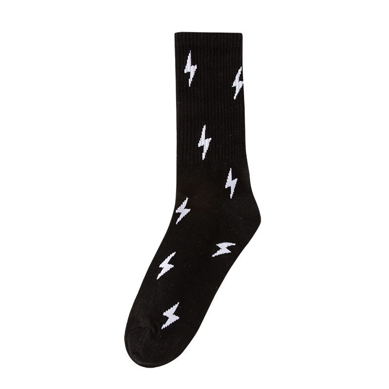 패션 브랜드 양말 유럽과 미국 스타일의 통기성 중간 종아리 길이 양말 힙합 개성 번개, 트렌디 한 남녀 스트리트 스포츠 양말 도매