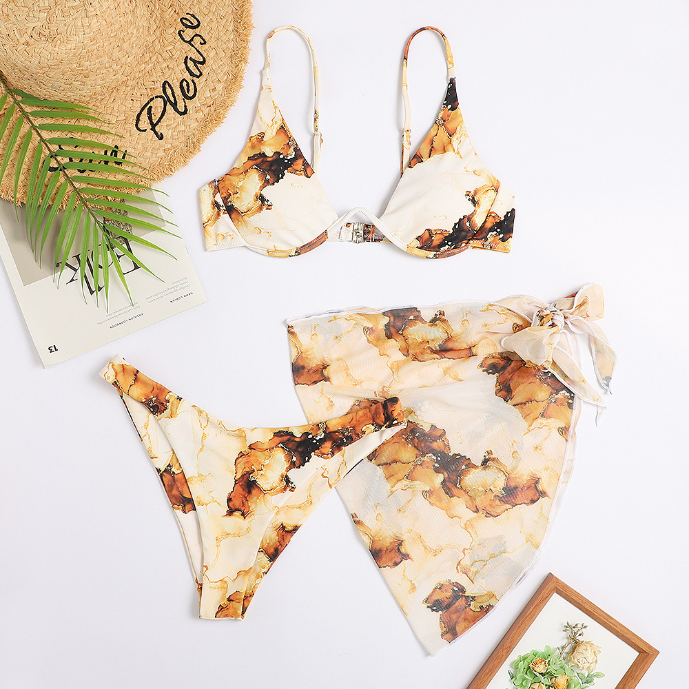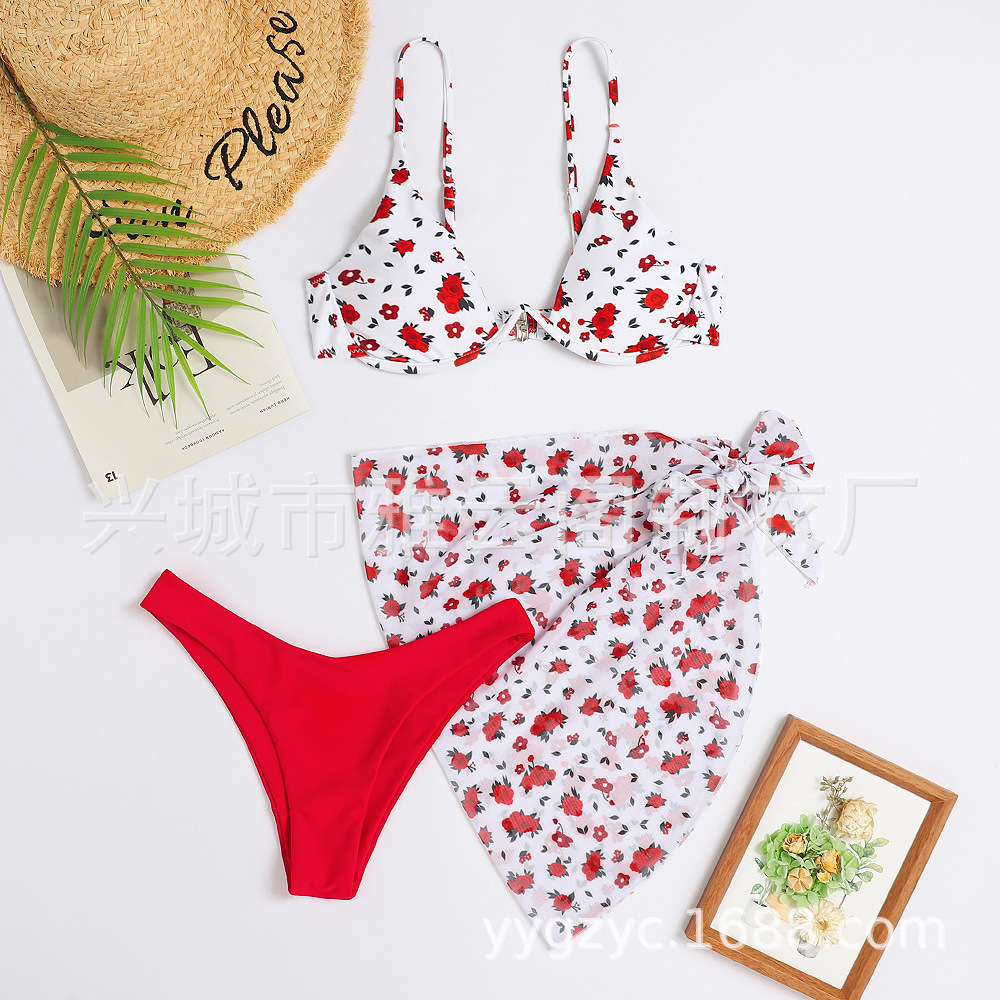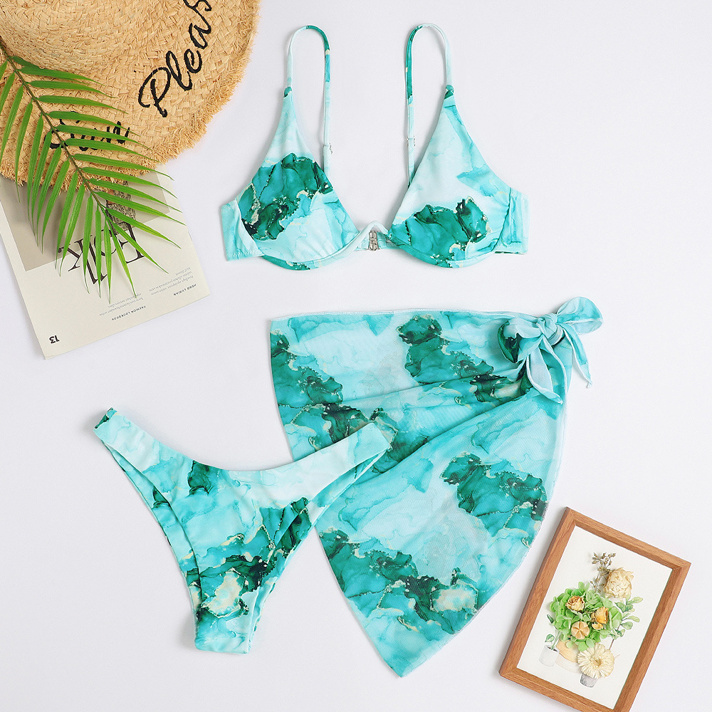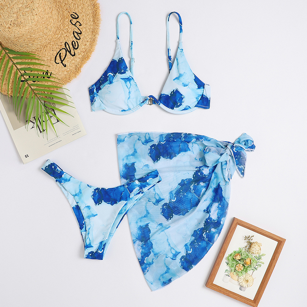 2024 신상 유럽풍 프린트 섹시 비키니 3피스 수영복 아마존 여성용 분리형 수영복
