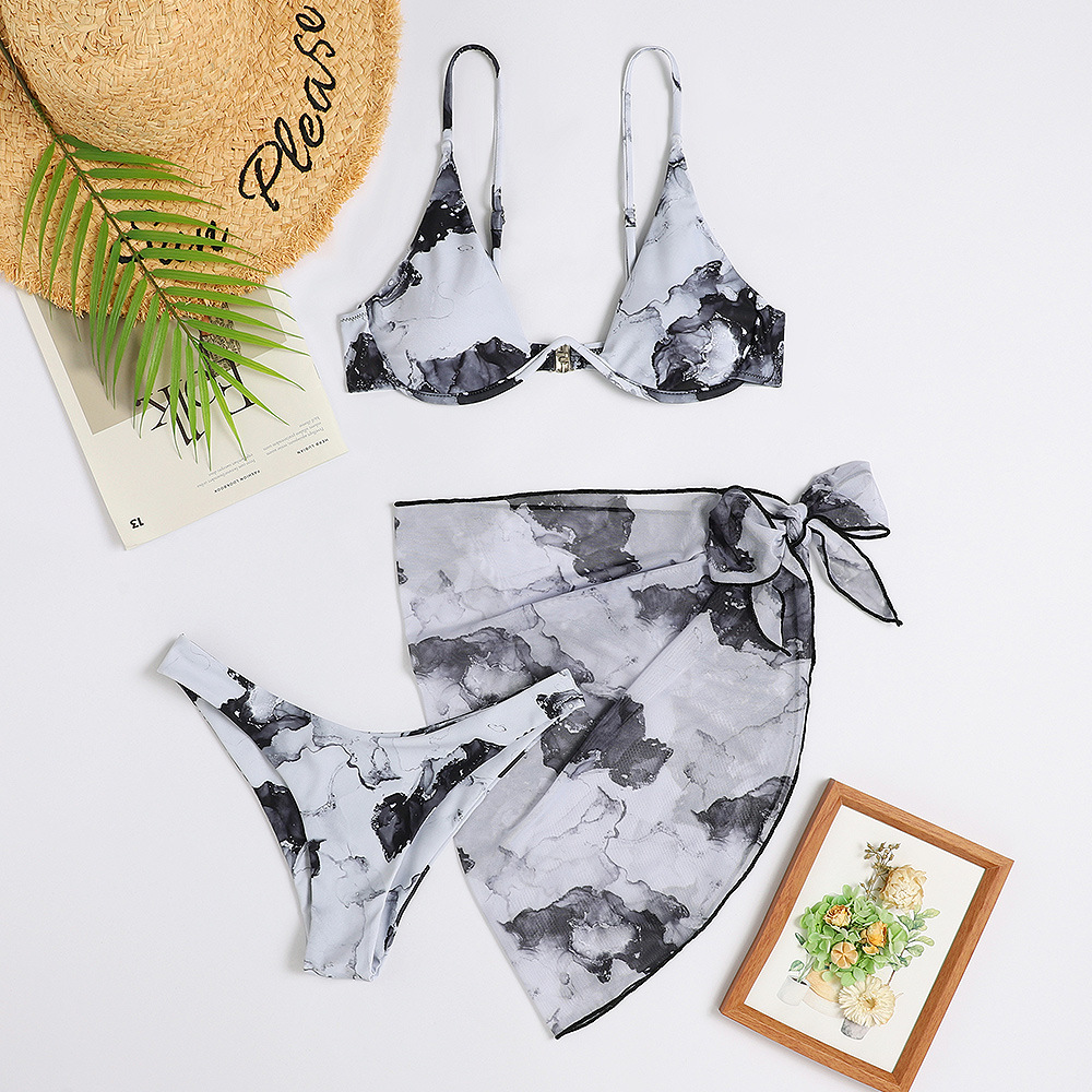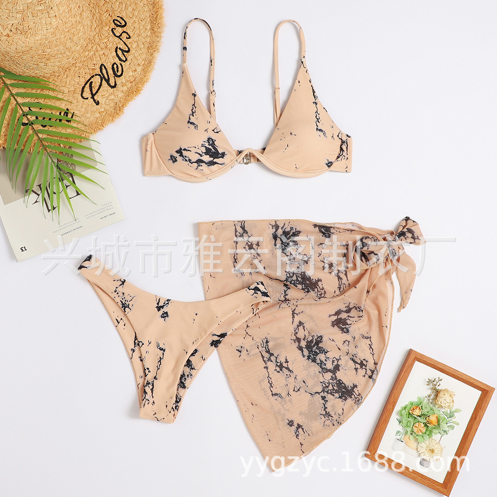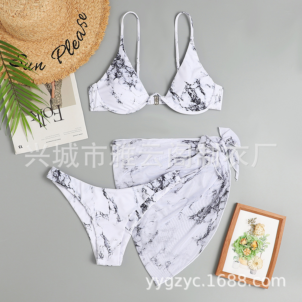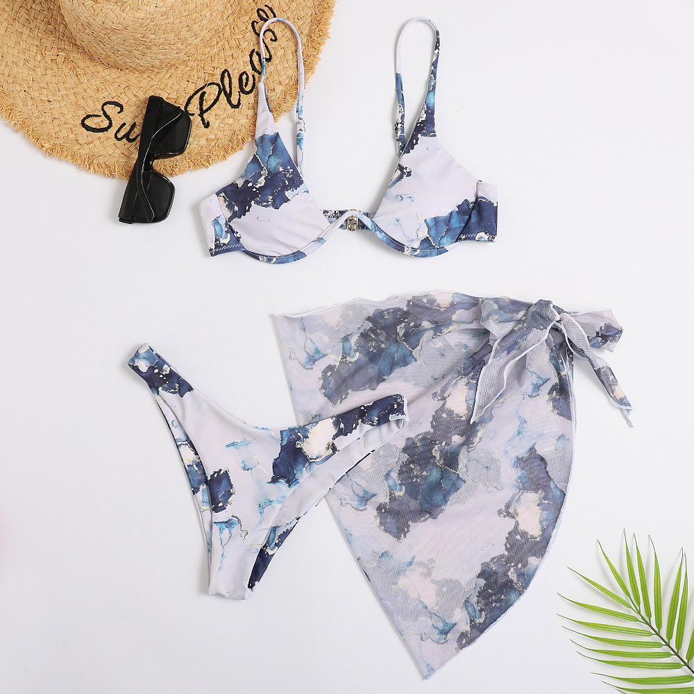 2024 신상 유럽풍 프린트 섹시 비키니 3피스 수영복 아마존 여성용 분리형 수영복