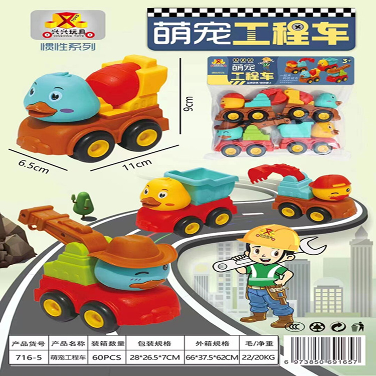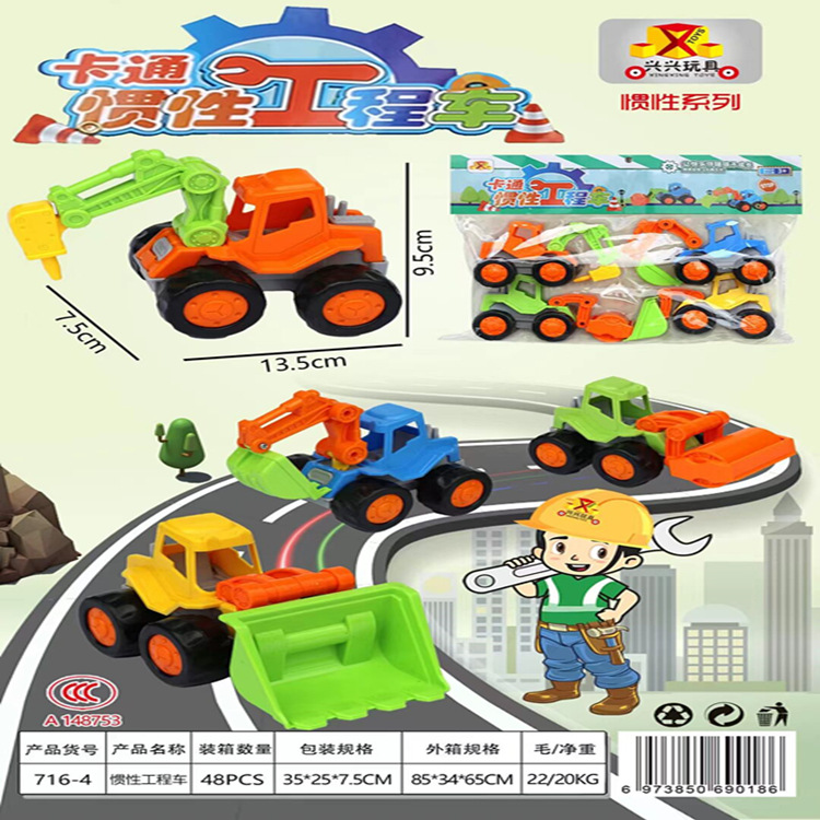 도매 716-5 사랑스러운 엔지니어링 차량 4 만화 모양의 관성 시리즈 채광 믹싱 덤프 크레인스토어 가기