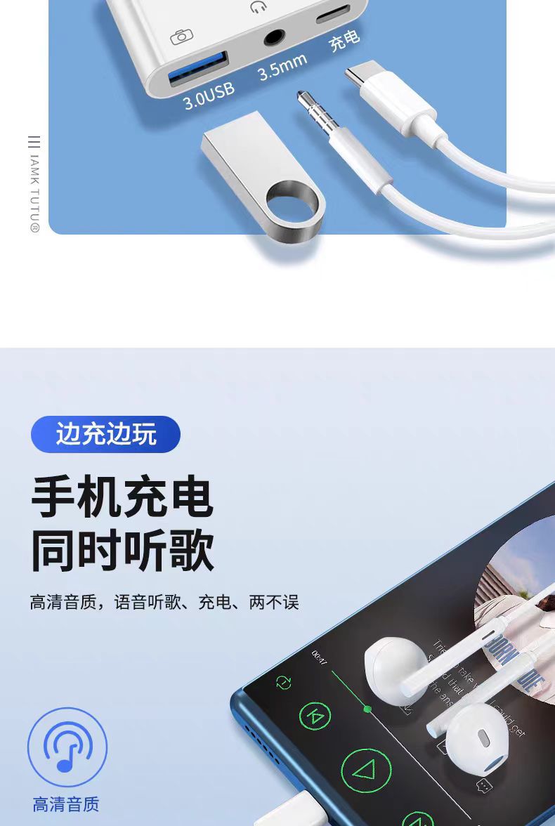 Huawei 휴대 전화 유형 어댑터 지원에 적합 PD 충전 사운드 카드 라이브 듣기 노래 고속 전송 어댑터스토어 가기
