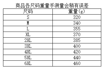 重量:S码230克 3XL码450克左右