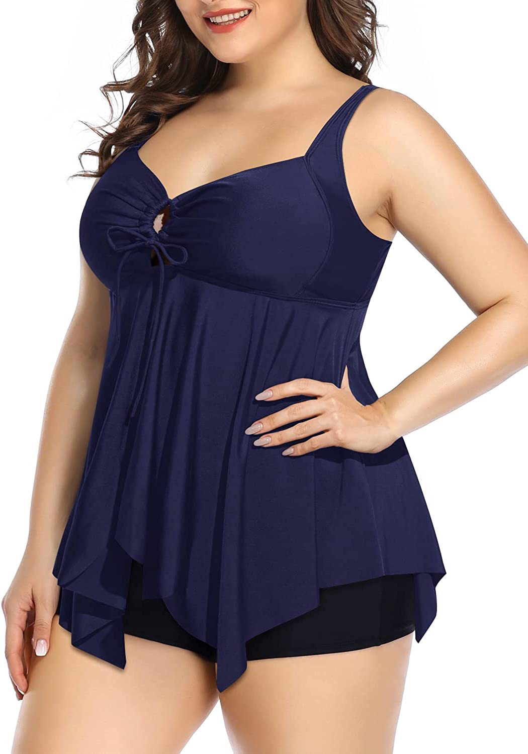 아마존 여자의 투피스 분할 수영복 크로스 보더 플러스 사이즈 수영복 배꼽 수영복 반바지 뚱뚱한 여자 수영복 탑