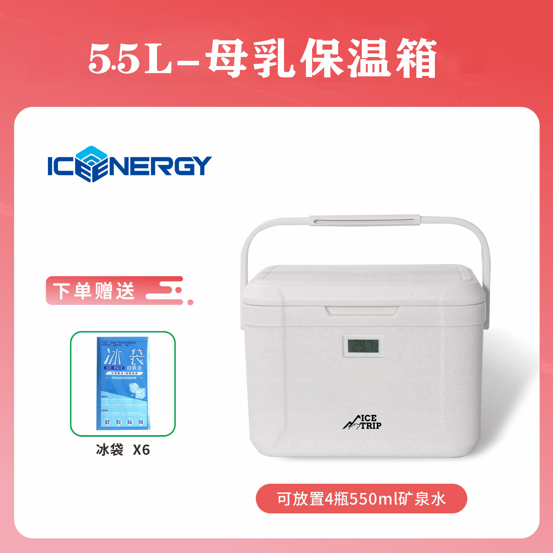 • 온도계가 있는 6L 흰색 + 아이스 박스 150ml*1+얼음주머니*6