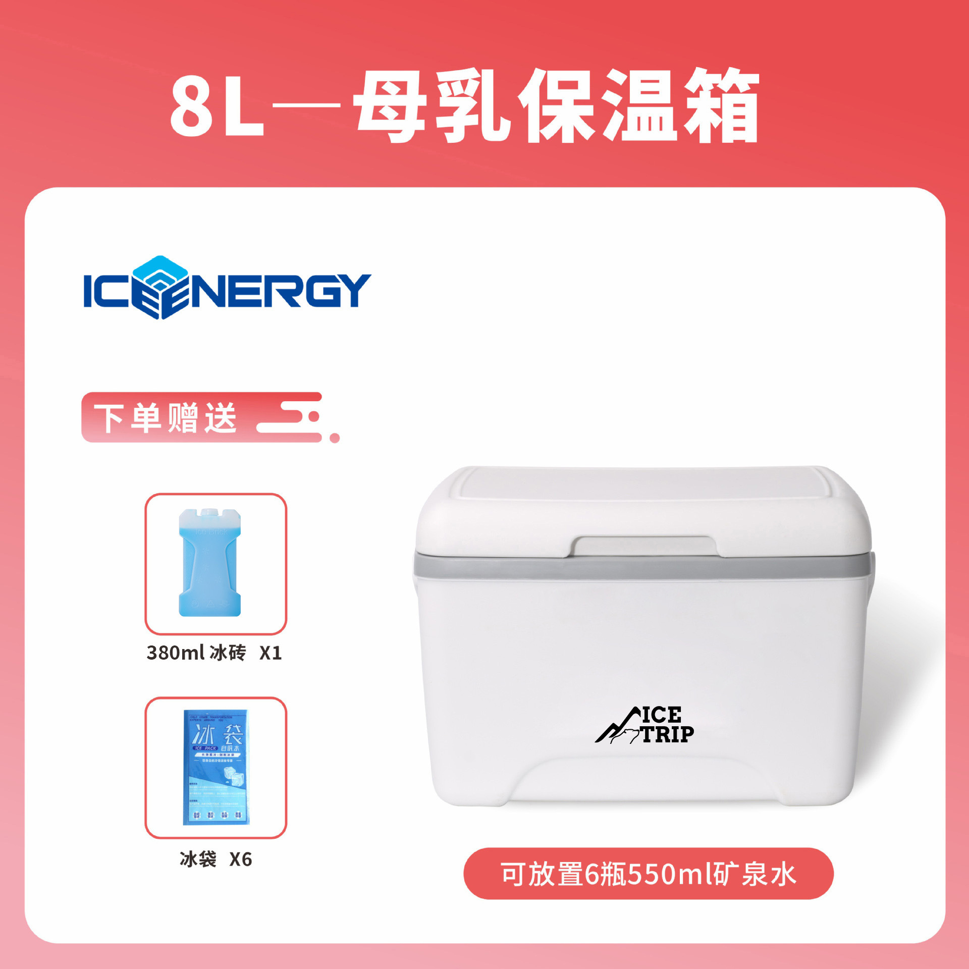 • 8L 온도계가없는 흰색 + 380ml 아이스 박스 * 1 + 아이스 백 * 6