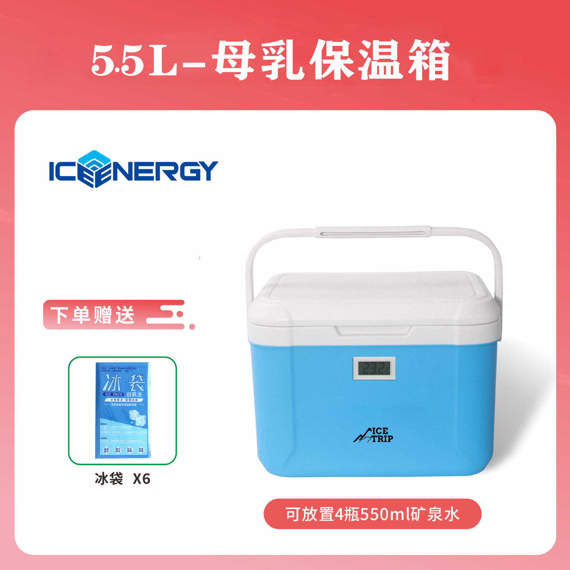 • 온도계가 있는 6L 파란색 + 150ml 아이스 박스*1+얼음 주머니*6