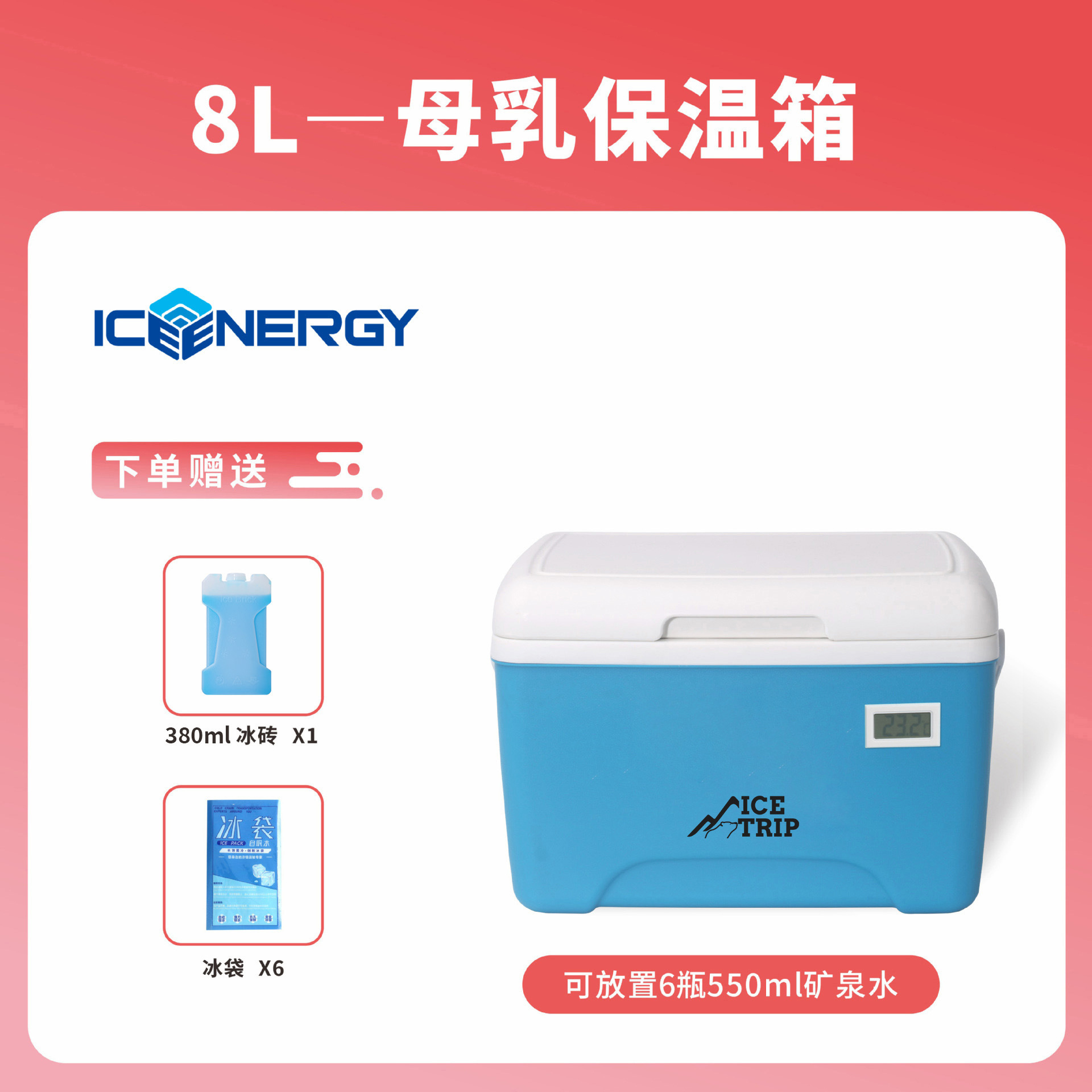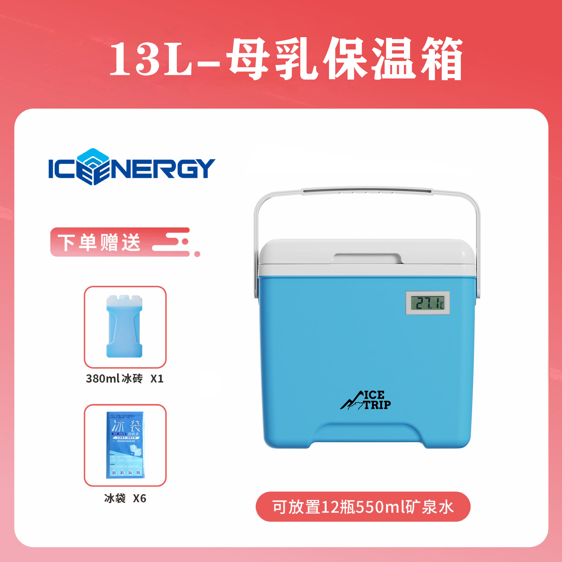 • 온도계가 있는 8L 파란색 + 380ml 아이스 박스*1+얼음 주머니*6