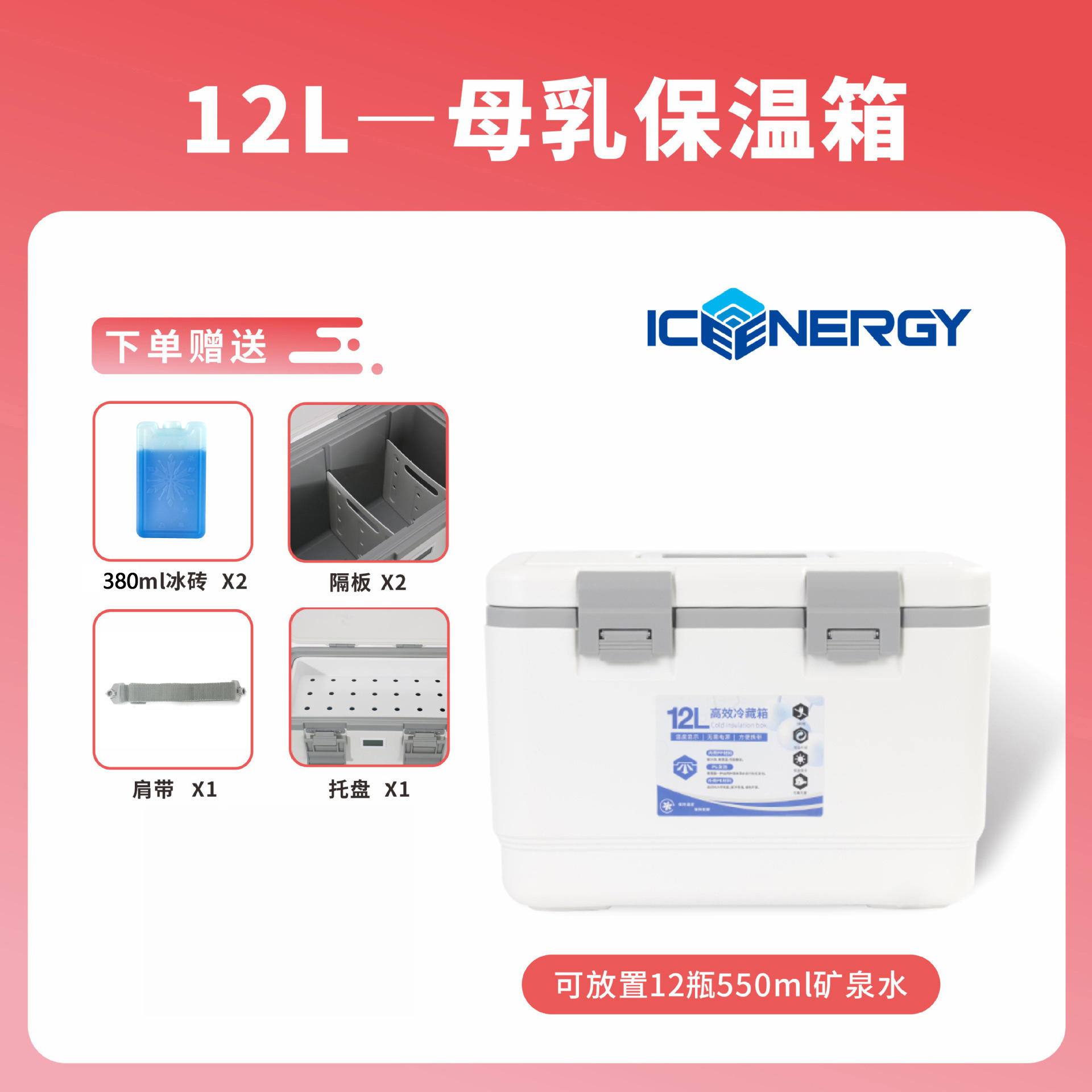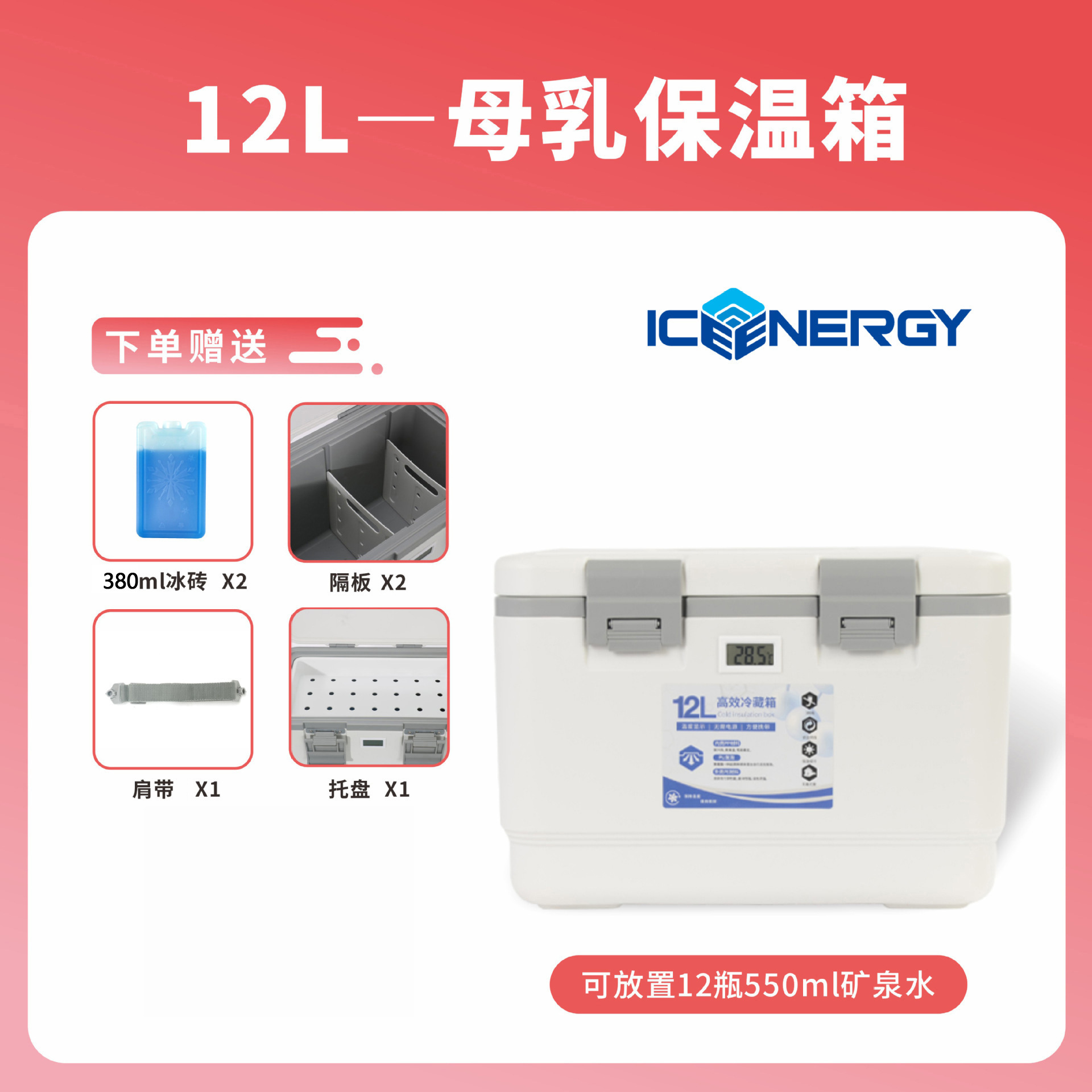 • 온도계 없는 12L 흰색 + 380ml 아이스박스*2+파티션*2+어깨끈*1+트레이*1