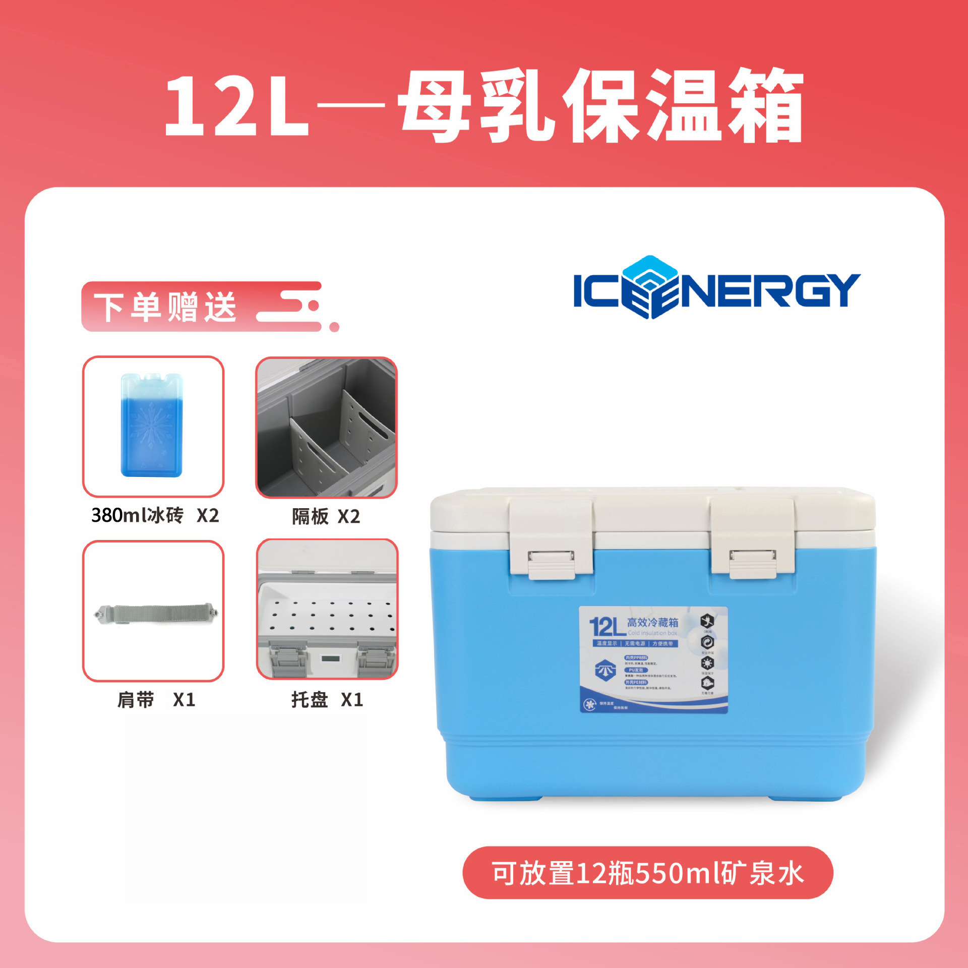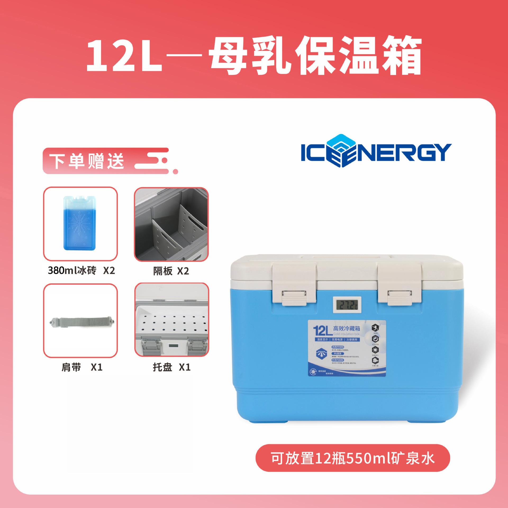 • 온도계 없는 12L 파란색 + 380ml 아이스박스*2+파티션*2+어깨끈*1+트레이*1