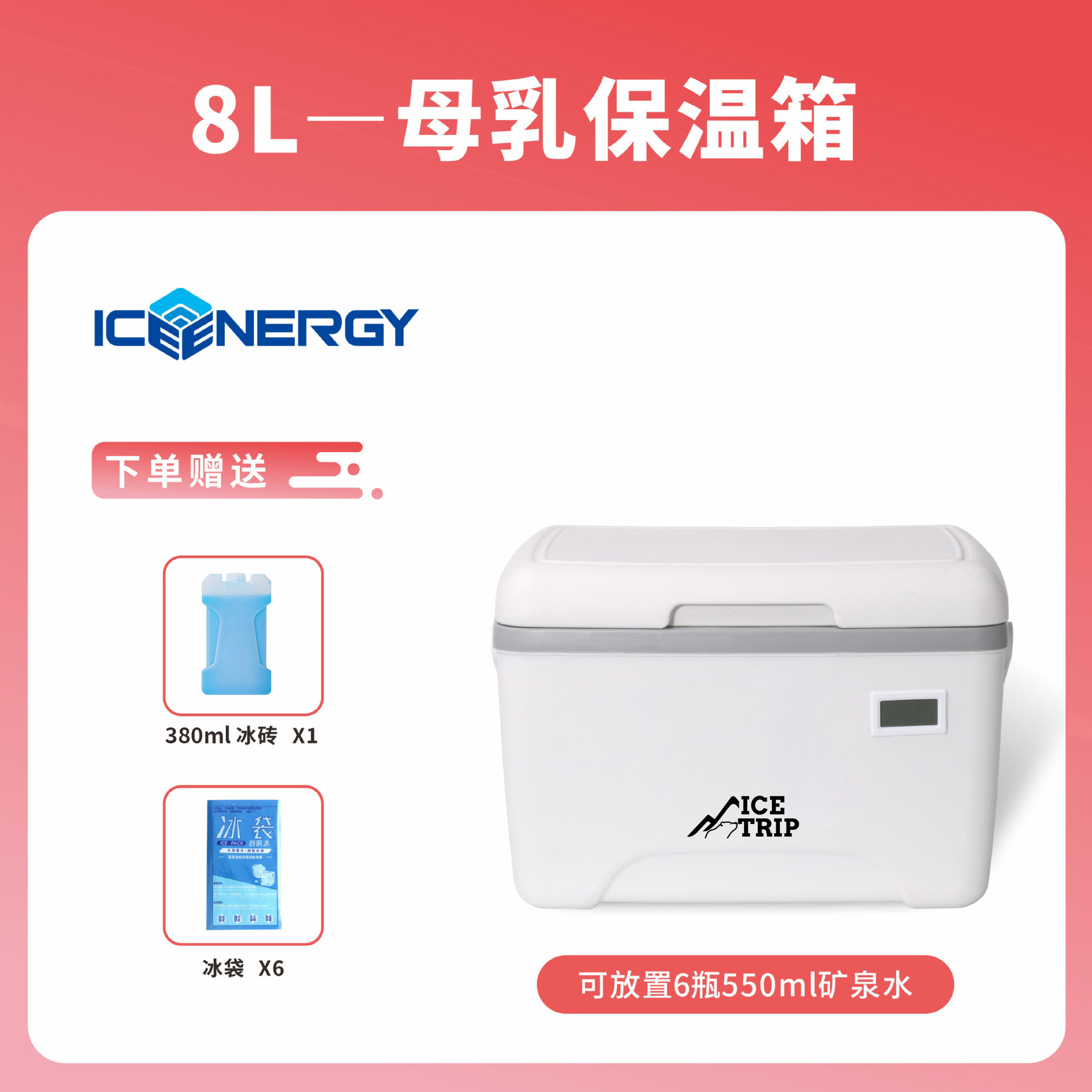 • 온도계가 있는 8L 흰색+380ml 아이스 박스*1+얼음 주머니*6