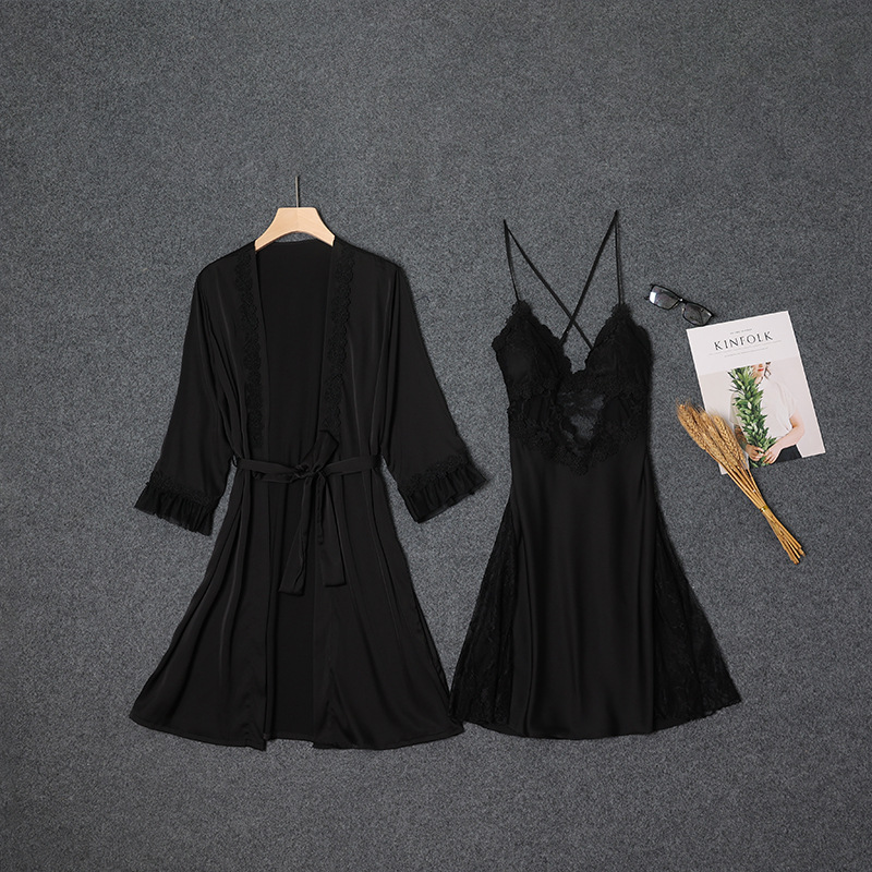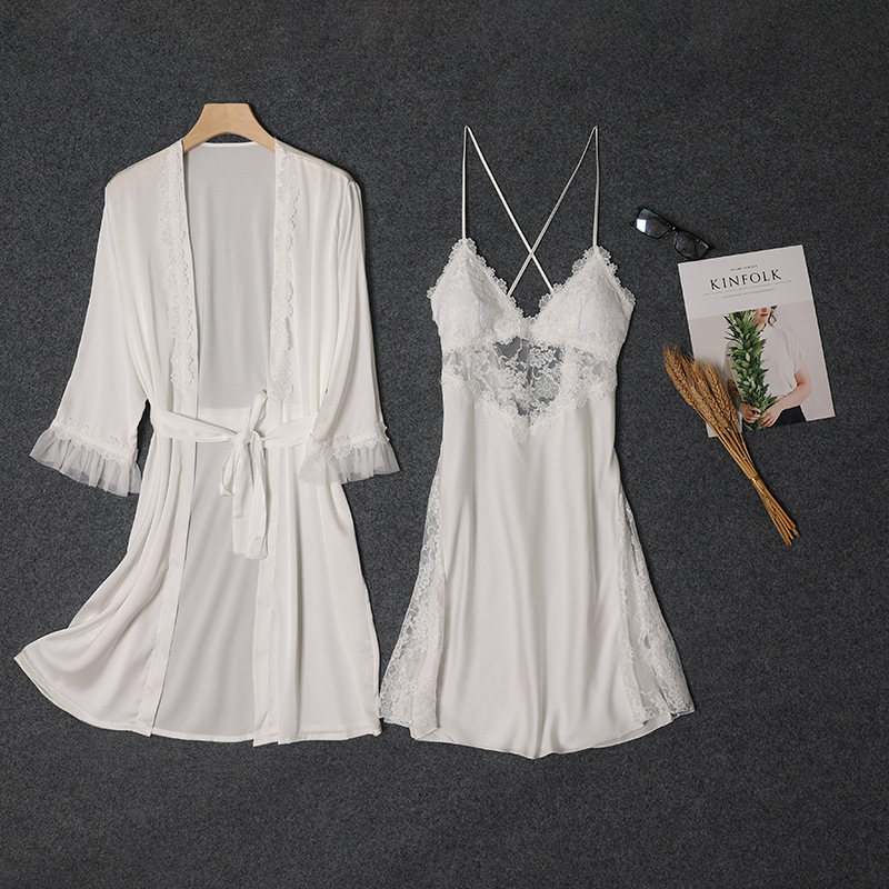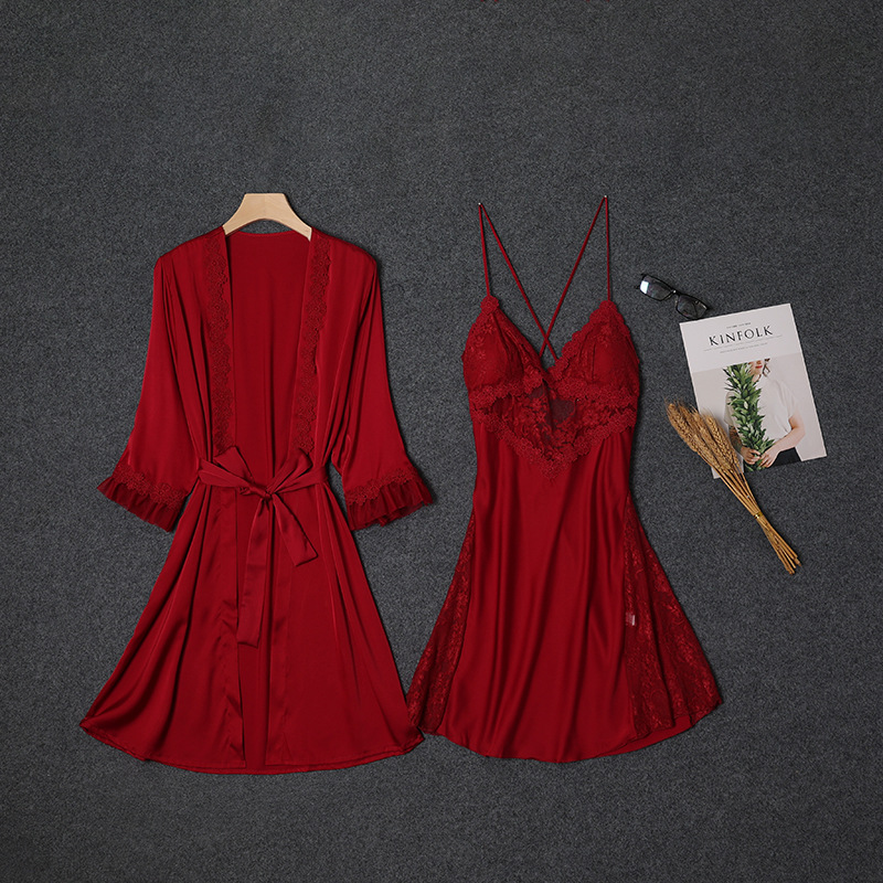 새로운 여성 새틴 잠옷 세트 여성 여름 섹시한 레이스 아름다운 등 슬링 얇은 잠옷