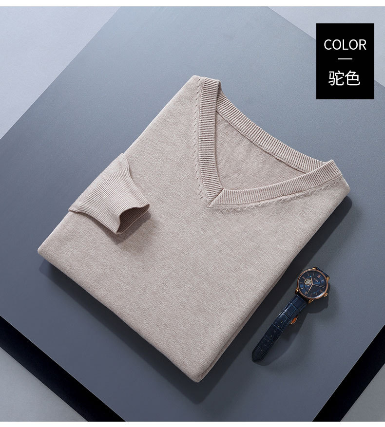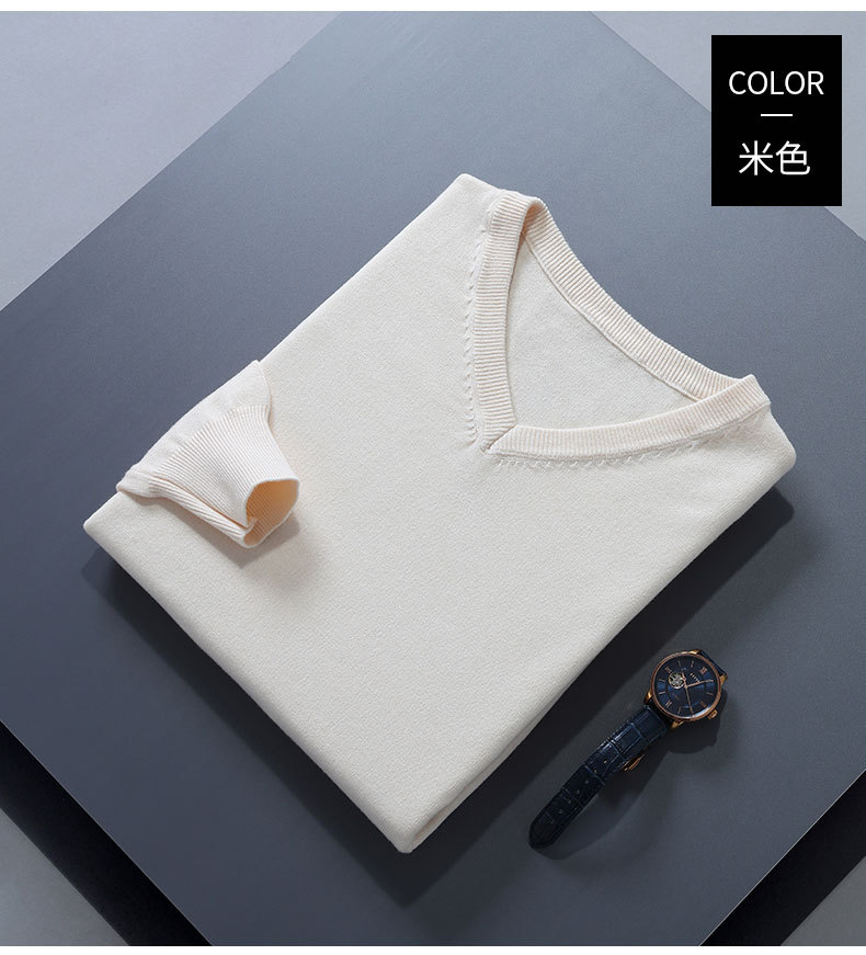 플러스 사이즈 모직 스웨터 남자의 V-넥 한국 스타일 느슨한 단색 니트 베이스 셔츠 봄과 가을 플러스 사이즈 단색 캐주얼 스웨터스토어 가기