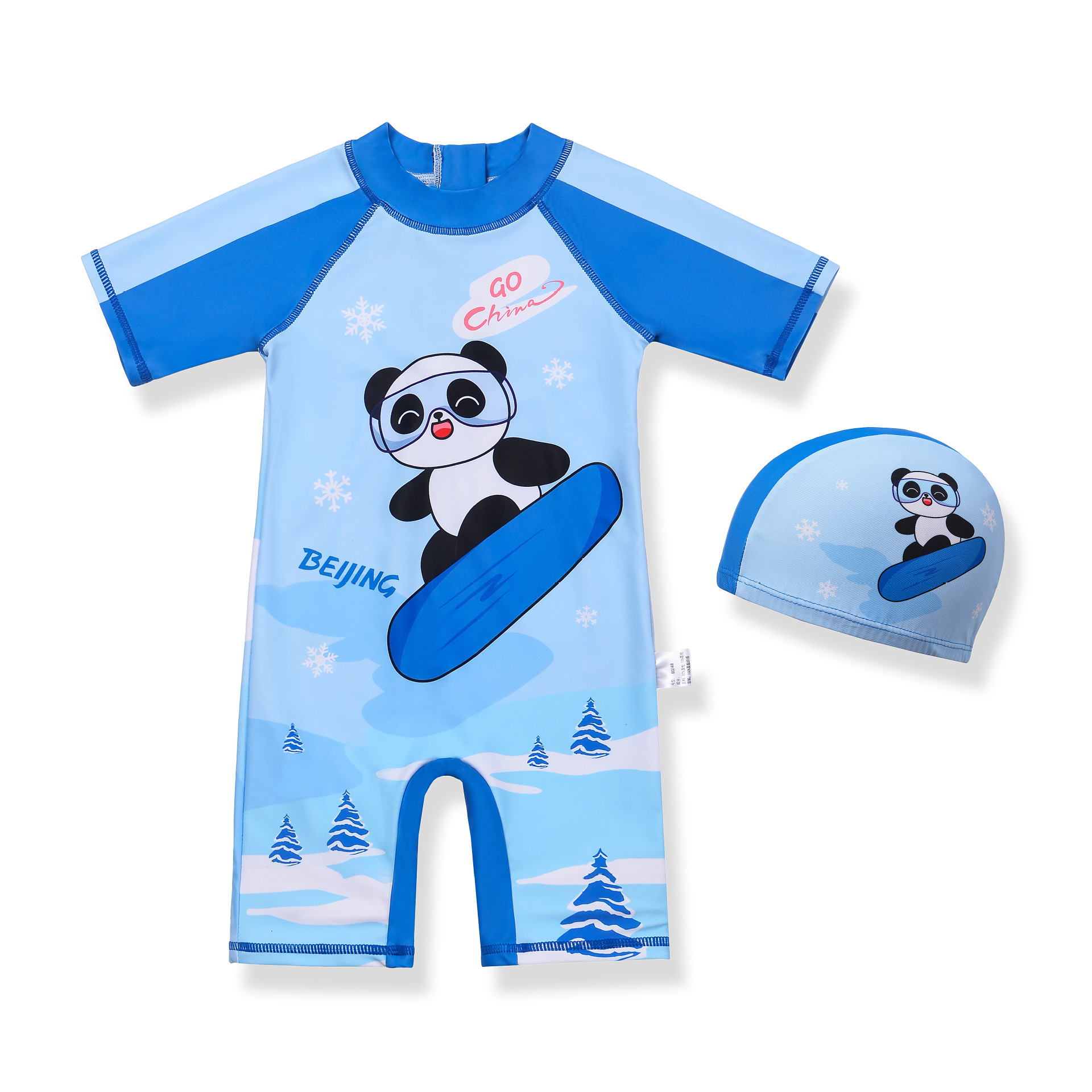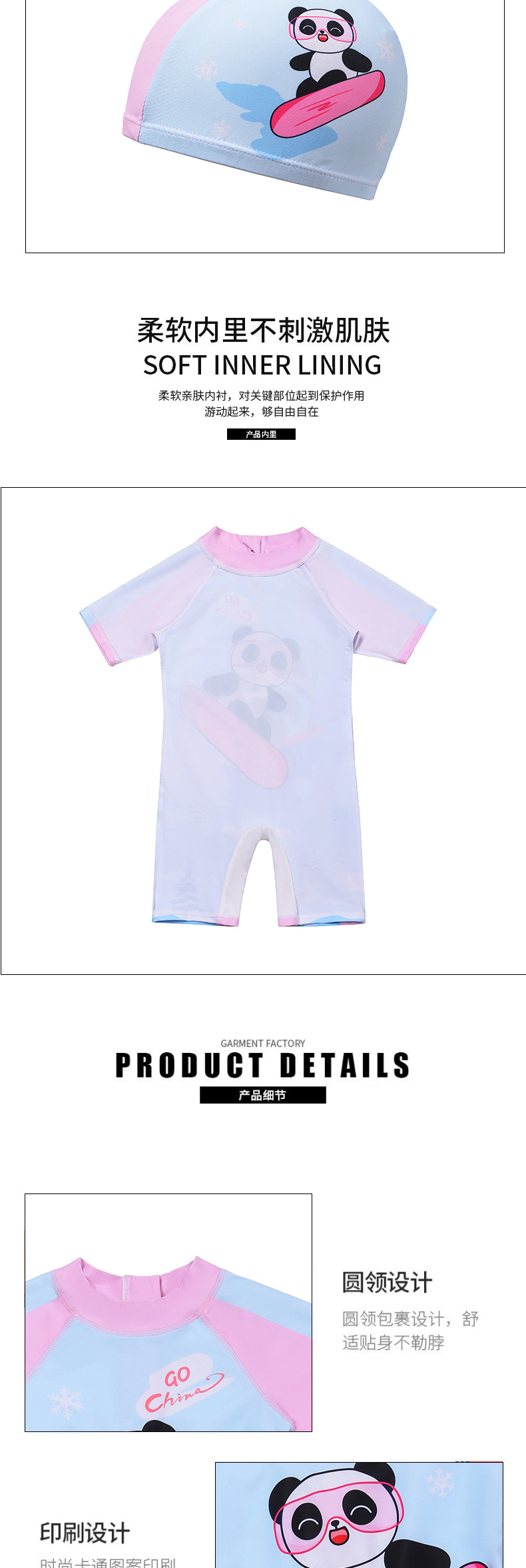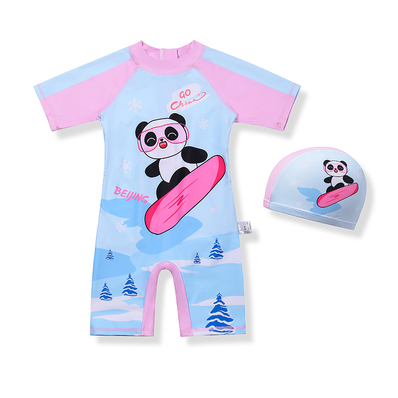 귀여운 어린이 수영복 소년 소녀 팬더 반팔 중대형 어린이 자외선 차단 수영복 만화 소녀 원피스 수영복