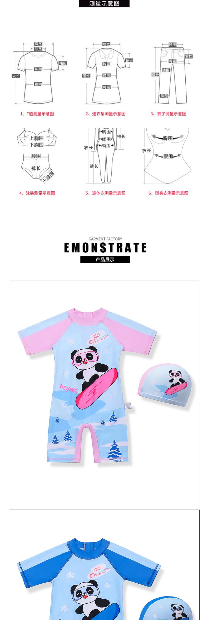 귀여운 어린이 수영복 소년 소녀 팬더 반팔 중대형 어린이 자외선 차단 수영복 만화 소녀 원피스 수영복스토어 가기