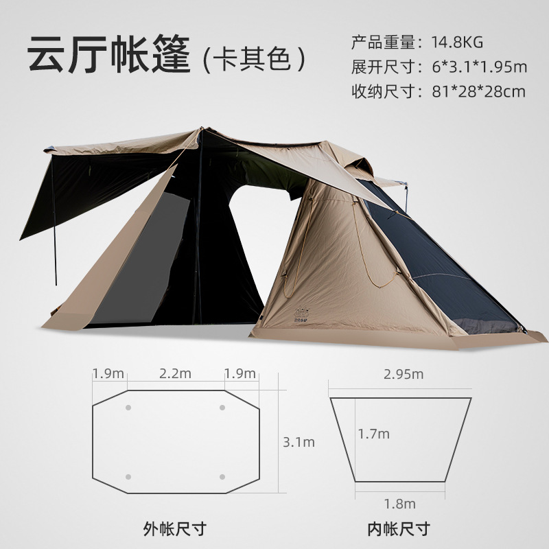 세 개의 작은 당나귀 두 방 한 홀 야외 텐트 더블 대피소 텐트 캠핑 블랙 고무 자외선 차단제 방수