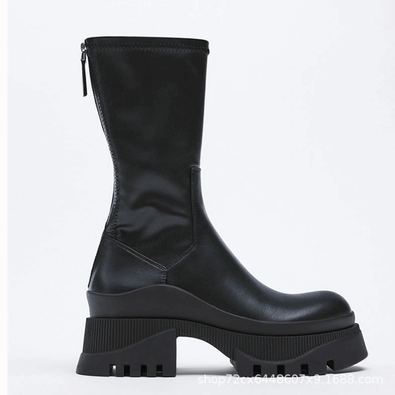 ZV2024 가을 겨울 신상품 작은 사이즈 두꺼운 밑창 키높이 첼시 숏부츠 통통한 여성용 슬림 키높이 마틴 부츠