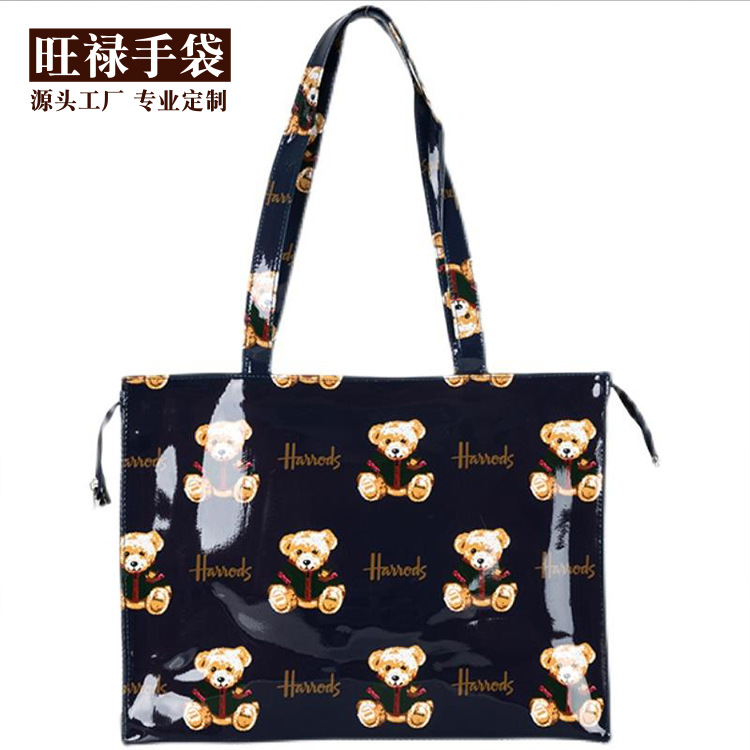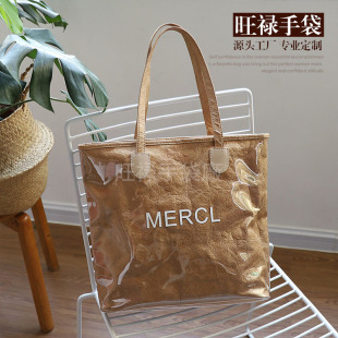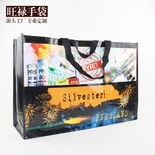 用这种方法加工的成品通常叫覆膜无纺布袋。此工艺分两步,即先采用传统的凹版印刷工艺将图文印至薄膜上,再采用覆膜工艺将印有图案的薄膜复合在无纺布上。一般大面积彩色图案印刷的无纺布袋均采用这种工艺。其特点是印刷精美,全程采用机器生产,生产周期短。另外产品具有的防水性能,成品的耐用性也较其它工艺生产的无纺布袋好。薄膜有亮光和亚光两种可供选择,亚光具磨砂效果!该产品时尚大方,耐用,色泽饱满,图案逼真,缺点是价格比较昂贵。
