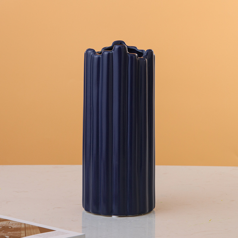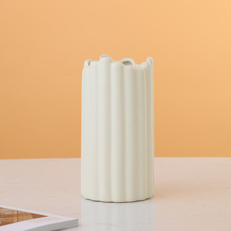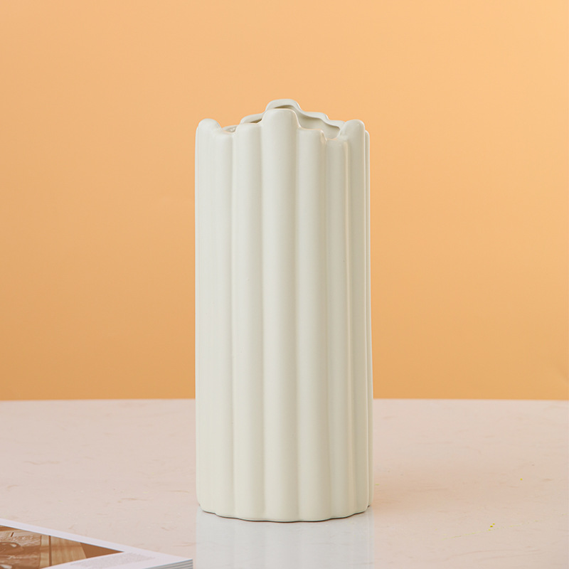 간단한 톱니 흰색 거실 꽃 세라믹에 배열 창조적 인 인터넷 인기 높은 튤립 꽃 세라믹 꽃병 장식품스토어 가기